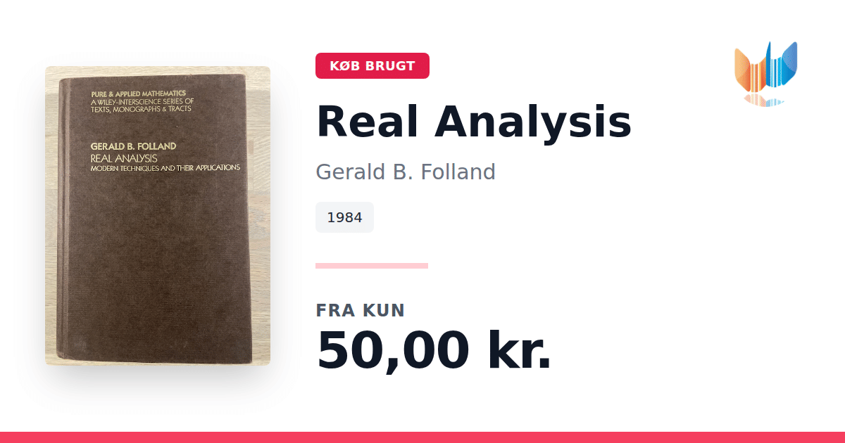 Lige nu kan du købe "Real Analysis" af Gerald B. Folland til kun 50,00 kr. Bogen du ser her er brugt, og i god stand. Vi har i øjeblikket kun et enkelt eksemplar til salg af "Real Analysis", så slå til mens du kan!