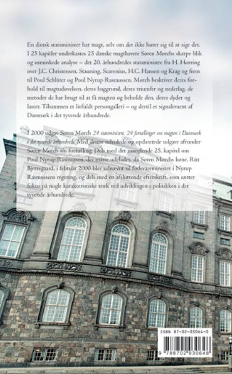 Kronologisk oversigt over Danmarks statsministre i det 20. århundrede med en gennemgang af deres baggrund, uddannelse, politiske løbebane og regeringstid. 3. revidere og udvidede udgave af 24 statsministre.