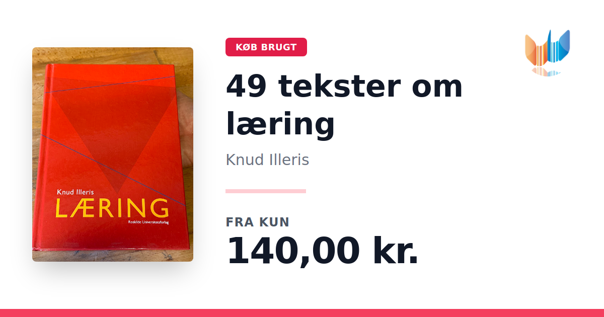 Lige nu kan du købe "49 tekster om læring" af Knud Illeris til kun 140,00 kr. Bogen du ser her er brugt, og i perfekt stand. Vi har i øjeblikket 7 eksemplarer til salg af "Læring", så husk at se de forskellige udgaver.
