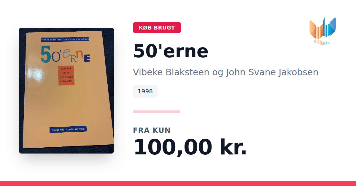 Lige nu kan du købe "50'erne" af Vibeke Blaksteen og John Svane Jakobsen til kun 100,00 kr. Bogen du ser her er brugt, og i perfekt stand. Vi har i øjeblikket kun et enkelt eksemplar til salg af "50'erne", så slå til mens du kan!