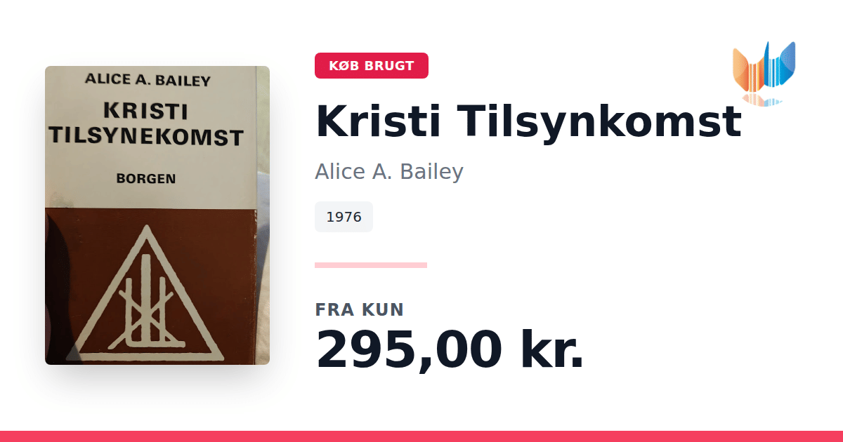 Lige nu kan du købe "Kristi Tilsynkomst" af Alice A. Bailey til kun 295,00 kr. Bogen du ser her er brugt, og i slidt stand. Vi har i øjeblikket kun et enkelt eksemplar til salg af "Kristi Tilsynkomst", så slå til mens du kan!