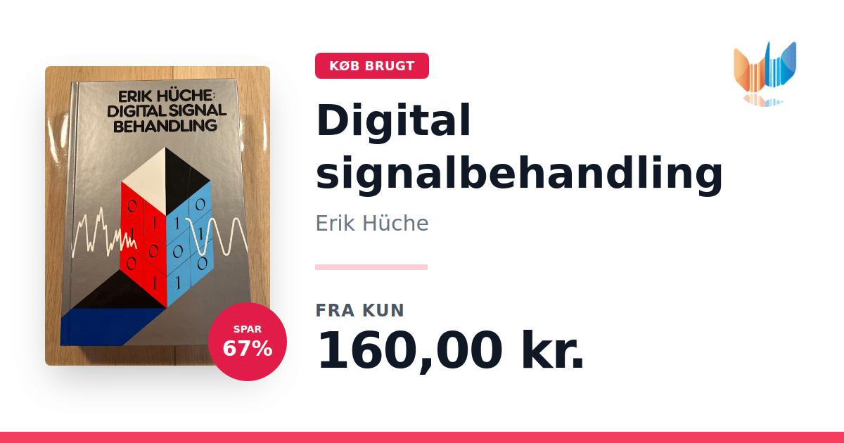 Lige nu kan du købe "Digital signalbehandling" af Erik Hüche til kun 160,00 kr. Du sparer hele 67% af nyprisen! Bogen du ser her er brugt, og i perfekt stand. Vi har i øjeblikket 2 eksemplarer til salg af "Digital signalbehandling", så husk at se de forskellige udgaver.