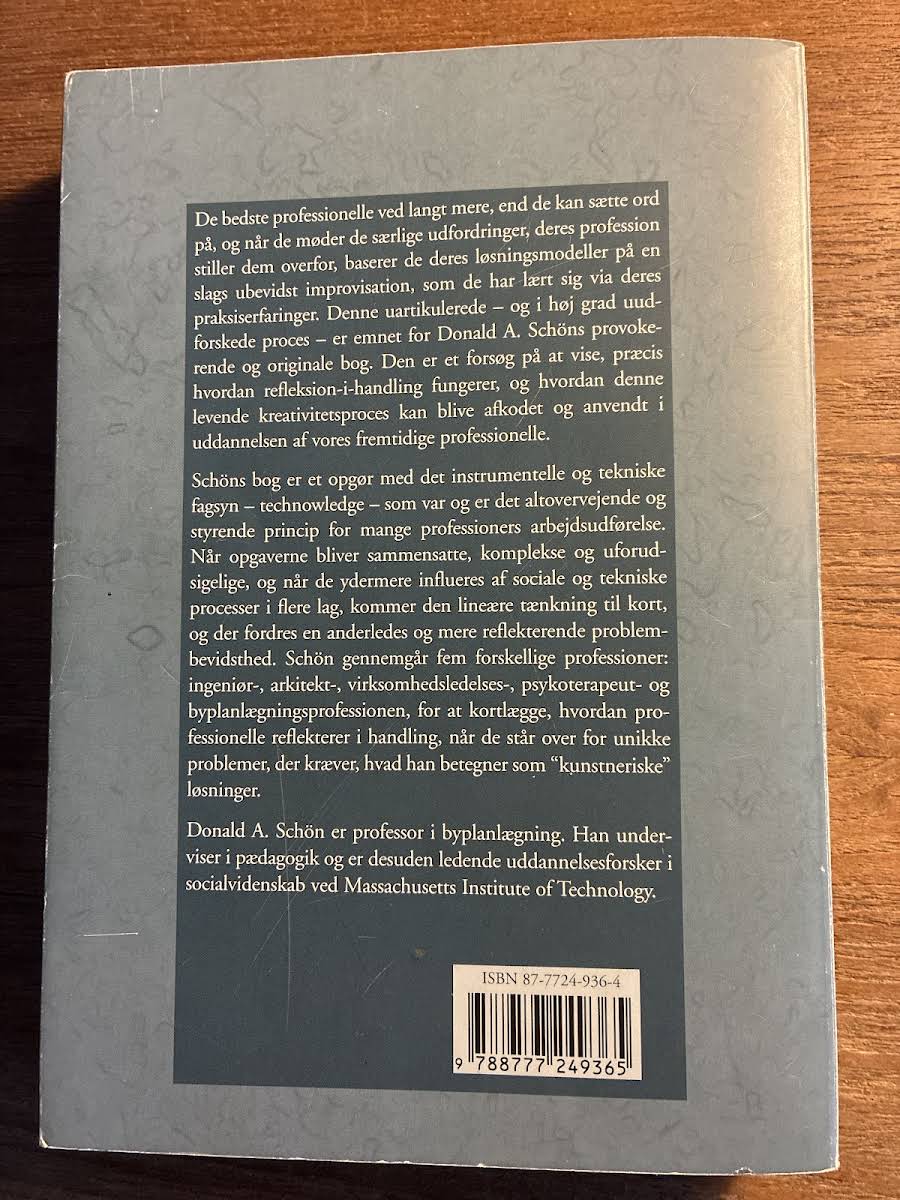 Donald A. Schön inviterer læseren til en dybdegående udforskning af, hvordan refleksion spiller en central rolle i professionel praksis. I "Den reflekterende praktiker" præsenteres teorier og indsigt, der understøtter den kritiske tænkning og selvrefleksion, som er afgørende for udviklingen i komplekse arbejdsmiljøer. Bogen tilbyder et solidt fundament for dem, der ønsker at forstå, hvordan man ved konstant at evaluere og tilpasse sin praksis, kan opnå forbedringer og vækst. Del af serien Pædagogiske Linjer er denne danske oversættelse af originaltitlen fra 1983, The Reflective Practioner – How Professional Think in Action. Med en måde at formidle tanker og erfaringer på, der både er tilgængelig og inspirerende, udgør "Den reflekterende praktiker" et uundværligt redskab for alle, der engagerer sig i professionel udvikling.