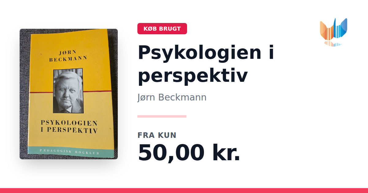 Lige nu kan du købe "Psykologien i perspektiv" af Jørn Beckmann til kun 50,00 kr. Bogen du ser her er brugt, og i god stand. Vi har i øjeblikket kun et enkelt eksemplar til salg af "Psykologien i perspektiv", så slå til mens du kan!