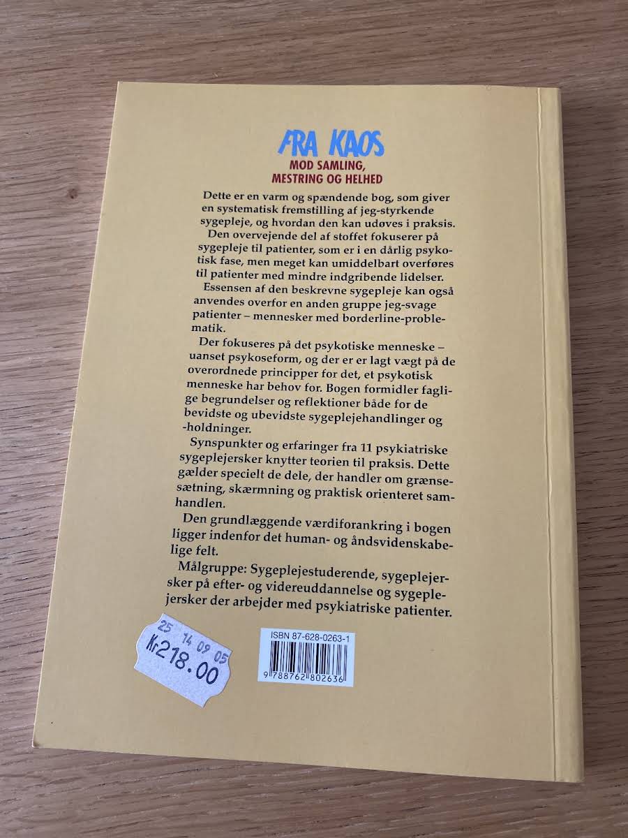 "Fra kaos mod samling, mestring og helhed" er en indsigtsfuld og tilgængelig bog, der giver en grundlæggende forståelse af psykiatri med særligt fokus på psykiatrisk sygepleje til psykotiske patienter. Liv Strand introducerer i bogen en je-styrkende tilgang og beskriver, hvordan denne praksis kan hjælpe patienter med at møde deres specifikke behov. Med et klart og systematisk perspektiv giver bogen læseren redskaber til at arbejde med psykotiske mennesker, og de overordnede principper i plejen præsenteres på en letforståelig måde. Denne tilgang kan med fordel også inspirere til indsats inden for andre områder, hvor individets styrker er i fokus.