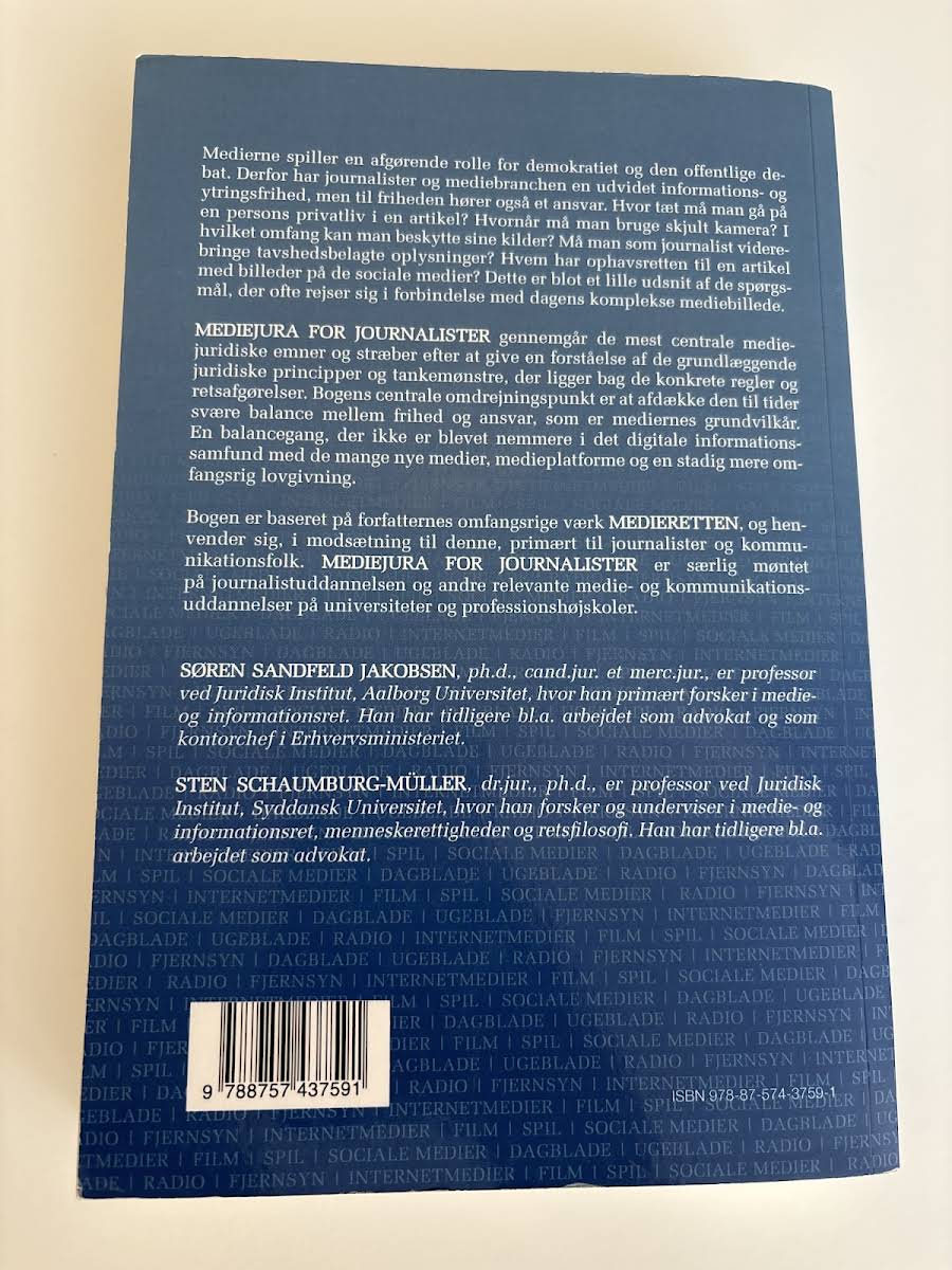 Mediejura for journalister – og andre mediearbejdere giver en grundig introduktion til de centrale mediejuridiske problemstillinger, der berører både journalister og øvrige aktører i medieverdenen. Bogen præsenterer ikke alene de konkrete regler og retsafgørelser, men skaber også forståelse for de underliggende juridiske principper og tankemønstre. Dette er særligt relevant i et moderne digitalt informationssamfund, hvor nye medieplatforme og en stadig mere kompleks lovgivning udfordrer både jurister og ikke-jurister. Med udgangspunkt i forfatternes omfattende arbejde inden for medieretten, er bogen målrettet uddannelser inden for journalistik, medie- og kommunikationsfag på både universiteter og professionshøjskoler. Værket belyser de juridiske aspekter ved ytringsfrihed, ansvar for medieindhold, æresret, persondata samt offentlighedens adgang til forvaltning og retssystemet, og giver dermed et solidt fundament for forståelsen af mediejura. Indholdsoversigt: Forord Kapitel 1. Introduktion til retten og medieretten Kapitel 2. Den Europæiske Menneskerettighedskonvention og medieretten Kapitel 3. Medierne og privatlivets fred Kapitel 4. Æresretten. Injurier og beskyldninger Kapitel 5. Den offentlige fred. Trusler, opfordringer, forhånelser mm. Kapitel 6. Ansvar for mediers indhold Kapitel 7. God presseskik og genmæle Kapitel 8. Journalisters rettigheder Kapitel 9. Medier og persondata Kapitel 10. Offentlighed i forvaltningen og hos domstolene mm. Kapitel 11. Radio- og tv-regulering samt public service Kapitel 12. Ophavsret og medier Forkortelser Litteratur Databaser Domsregister Stikordsregister