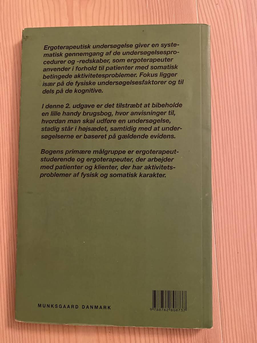 Er "Ergoterapeutisk undersøgelse" en praktisk og systematisk guide, der redegør for de undersøgelsesprocedurer og redskaber, der anvendes inden for ergoterapi. Bogen giver konkrete anvisninger til, hvordan man udfører en grundig undersøgelse af patienter med somatiske aktivitetsproblemer, og den byder samtidig på relevant teoretisk baggrund, som styrker forståelsen af de fysiske og kognitive aspekter. Udarbejdet med både ergoterapeutstuderende og praktiserende ergoterapeuter for øje, fungerer denne håndbog som et uundværligt redskab i den kliniske praksis. Med sin lette tilgang til komplekse undersøgelsesprocesser bidrager bogen til en evidensbaseret tilgang, der understøtter faglig udvikling og præcis patientvurdering.