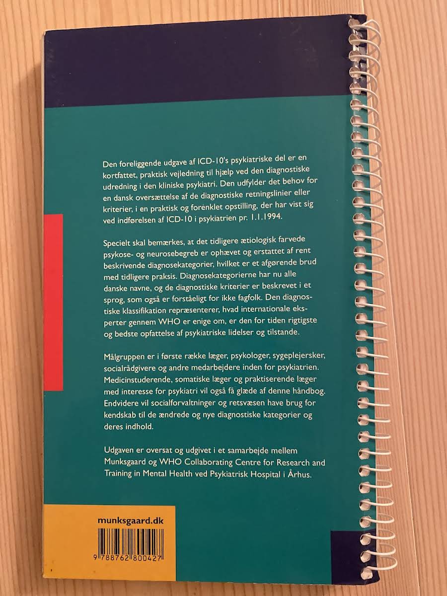 "Psykiske lidelser og adfærdsmæssige forstyrrelser" er en dansk udgave af den psykiatriske del af WHO's ICD-10, hvor Aksel Bertelsen har samlet alle de nødvendige diagnostiske kriterier sammen med supplerende beskrivelser af tilstande, som er relevante for psykiske lidelser. Bogen giver et klart overblik og er målrettet sundhedsprofessionelle, herunder læger, psykologer og sygeplejersker. Med sit overskuelige format og velorganiserede numeriske og alfabetiske indeks er denne udgave et uundværligt redskab til den diagnostiske udredning inden for psykiatrien. Udgivet i 2000 på 10. udgave af Munksgaard, tilbyder bogen et praktisk og lettilgængeligt værktøj, som kan anvendes både i klinisk praksis og som supplement ved studier af psykiske lidelser.