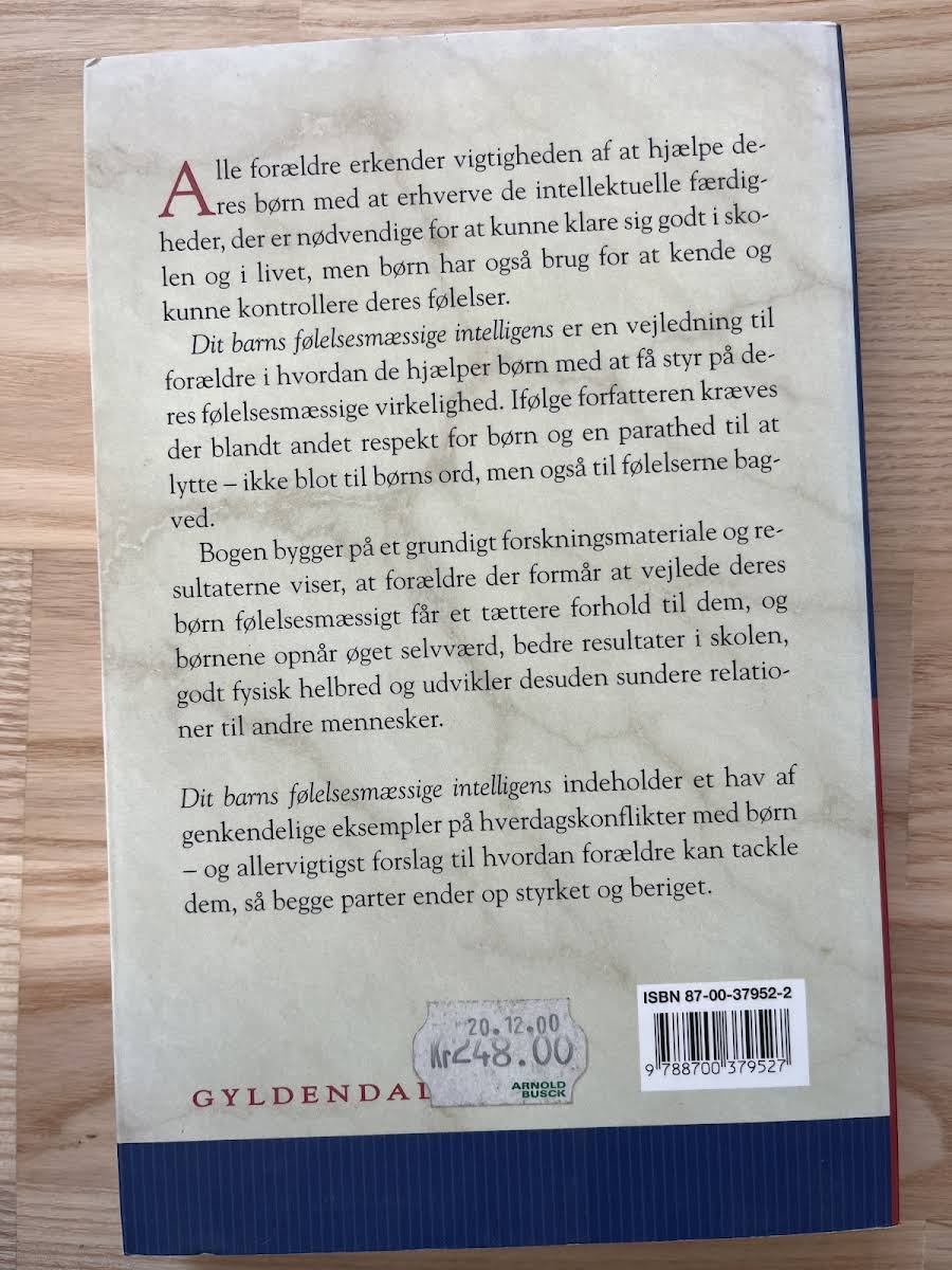 "Dit barns følelsesmæssige intelligens" giver forældre indsigt i, hvordan børns følelsesliv kan støtte en balanceret udvikling, ud over den traditionelle fokus på intellektuelle færdigheder. Med fokus på vigtigheden af følelsesmæssig forståelse, viser forfatteren John M. Gottman, hvordan forældre kan hjælpe deres børn med at navigere i komplekse følelser gennem lyttende nærvær og opmærksomhed. Bogen fungerer som en praktisk guide, der ikke blot opfordrer til, at man lytter til børnenes ord, men også til de følelser, der bag dem. Gennem en række tests og øvelser får forældre mulighed for at forstå deres egen forældrestil og lære metoder til at styrke relationen til deres barn. Denne første udgave fra Gyldendal, udgivet i 1999, er et værdifuldt redskab for dem, der ønsker at fremme en følsom og tryg opvækst.