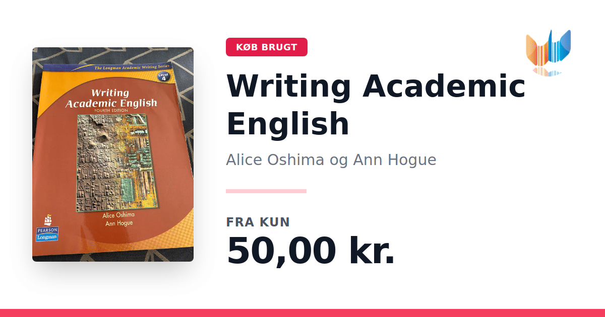 Lige nu kan du købe "Writing Academic English" af Alice Oshima og Ann Hogue til kun 50,00 kr. Bogen du ser her er brugt, og i perfekt stand. Vi har i øjeblikket 3 eksemplarer til salg af "Writing Academic English", så husk at se de forskellige udgaver.