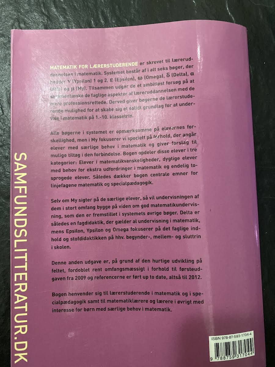 Matematik for lærerstuderende – MY er en central del af et ambitiøst lærebogssystem til den nye læreruddannelse i matematik, der rummer seks værker. Serien samler de faglige og pædagogiske aspekter og giver de lærerstuderende et solidt grundlag for at undervise elever fra 1. til 10. klasse. I denne udgave sættes der særligt fokus på elever med særlige behov i matematik. Bogen giver konkrete forslag til, hvordan undervisningen kan tilpasses forskellige elevgrupper – herunder elever med matematikvanskeligheder, dem der kræver ekstra udfordringer, samt tosprogede elever. Med en velafbalanceret tilgang kombineres teoretisk indsigt med praktiske tiltag, så du som studerende er godt rustet til at møde en bred elevgruppe.