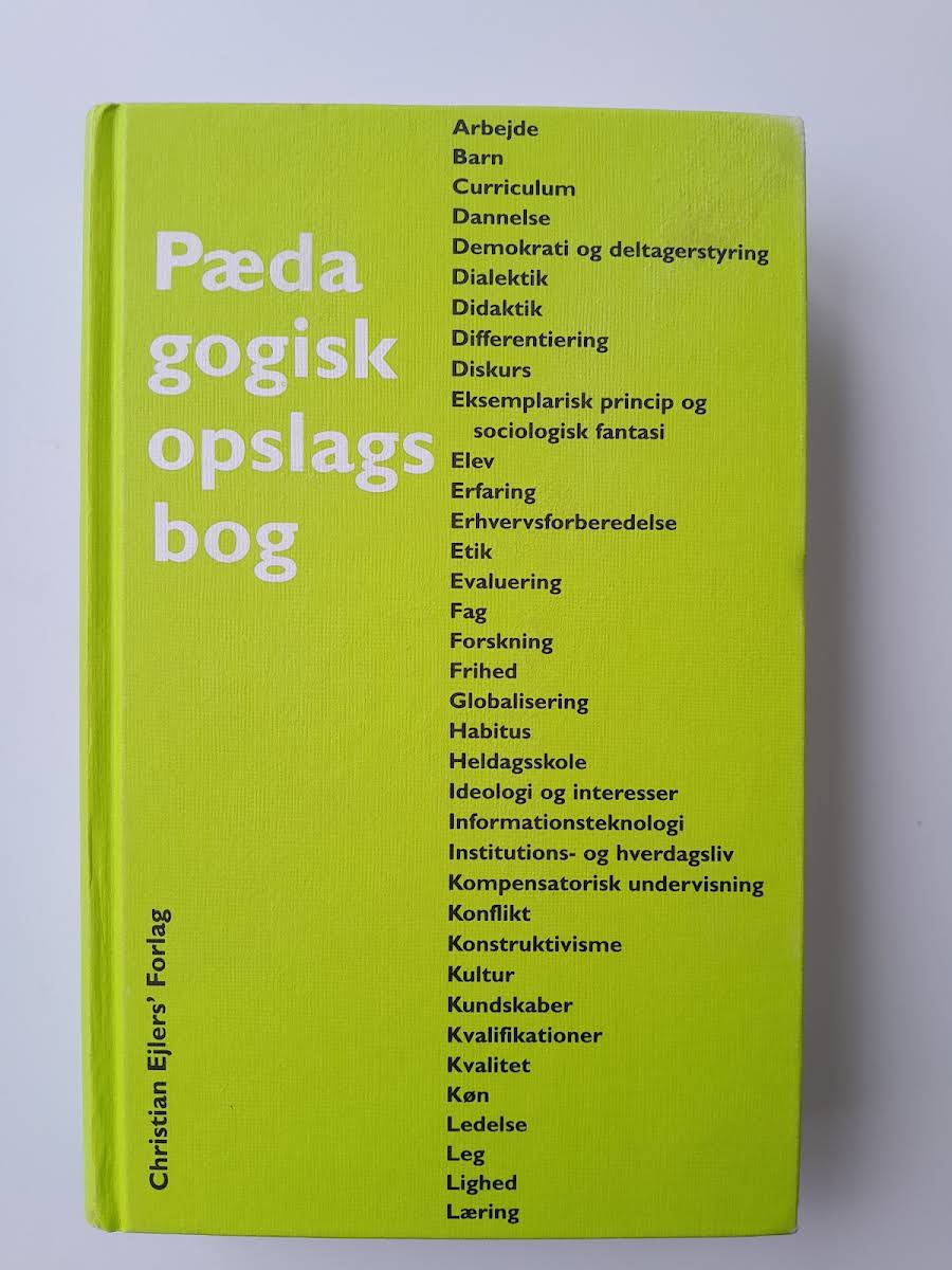 "Pædagogisk opslagsbog" udgivet af Christian Ejlers' Forlag. Bogen indeholder en række pædagogiske begreber og termer, som er listet på forsiden.