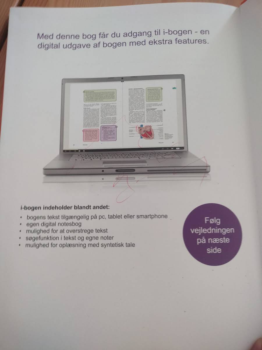 Bogen er kun brugt kort tid grundet afbrudt studie og fremstår derfor rigtig pæn og uden overstregninger. E-nøglen er brugt.