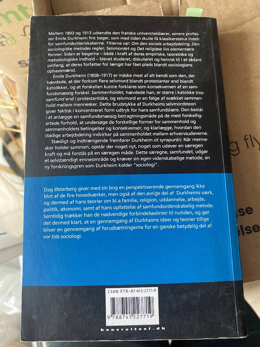 Émile Durkheim har sat sit præg på moderne samfundsvidenskab, og hans banebrydende værker har længe haft en central plads i sociologisk tænkning. Med studier som Om den sociale arbejdsdeling og Selvmordet udfordrer han vores forståelse af, hvordan sociale bånd og fællesskaber opstår og udvikler sig. Durkheims ideer om menneskets iboende sociale natur har siden sat standarden for, hvordan vi analyserer både individer og samfund. I sin bog gennemgår Dag Østerberg grundigt Durkheims omfattende teoretiske univers. Gennem en klar og nuanceret fremstilling belyser Østerberg, hvordan Durkheim bidrog til vores forståelse af centrale aspekter af samfundslivet, såsom familie, religion, uddannelse, arbejde, politik og økonomi. Særligt fokuseres der på den sociale samhørighed, der udgør fundamentet for, hvad det vil sige at være menneske i et socialt fællesskab.