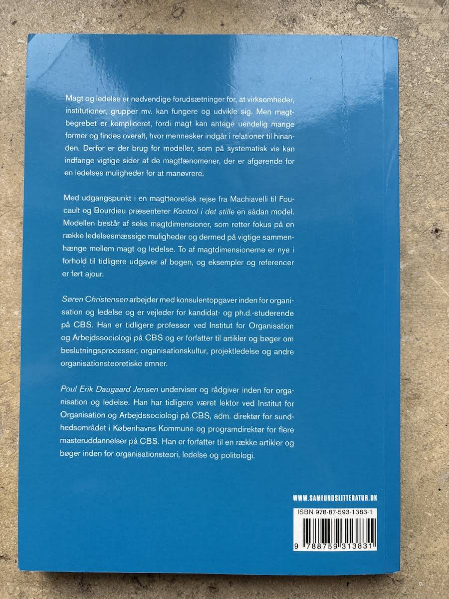 Kontrol i det stille – om magt og ledelse er et centralt værk af Søren Christensen og Poul Erik Daugaard Jensen, som nøje undersøger magtbegrebets mange facetter og dets betydning for ledelse. Gennem seks velstrukturerede kapitler præsenteres en model, der belyser forskellige magtdimensioner. Bogen behandler temaer som direkte magt, indirekte magt, bevidsthedskontrollerende magt, magt i en "Garbage Can-situation," institutionel magt og relationel magt. Med en systematisk tilgang formår forfatterne at skabe en sammenhængende forståelse af, hvordan de forskellige former for magt interagerer med ledelsesprocesser. Kontrol i det stille tilbyder læseren analytiske redskaber og teoretiske perspektiver, der kan være uvurderlige for både undervisning og praktisk ledelsesudøvelse. Bogen giver derfor et solidt grundlag for dem, der ønsker at dykke ned i sammenhængen mellem magt og ledelse.