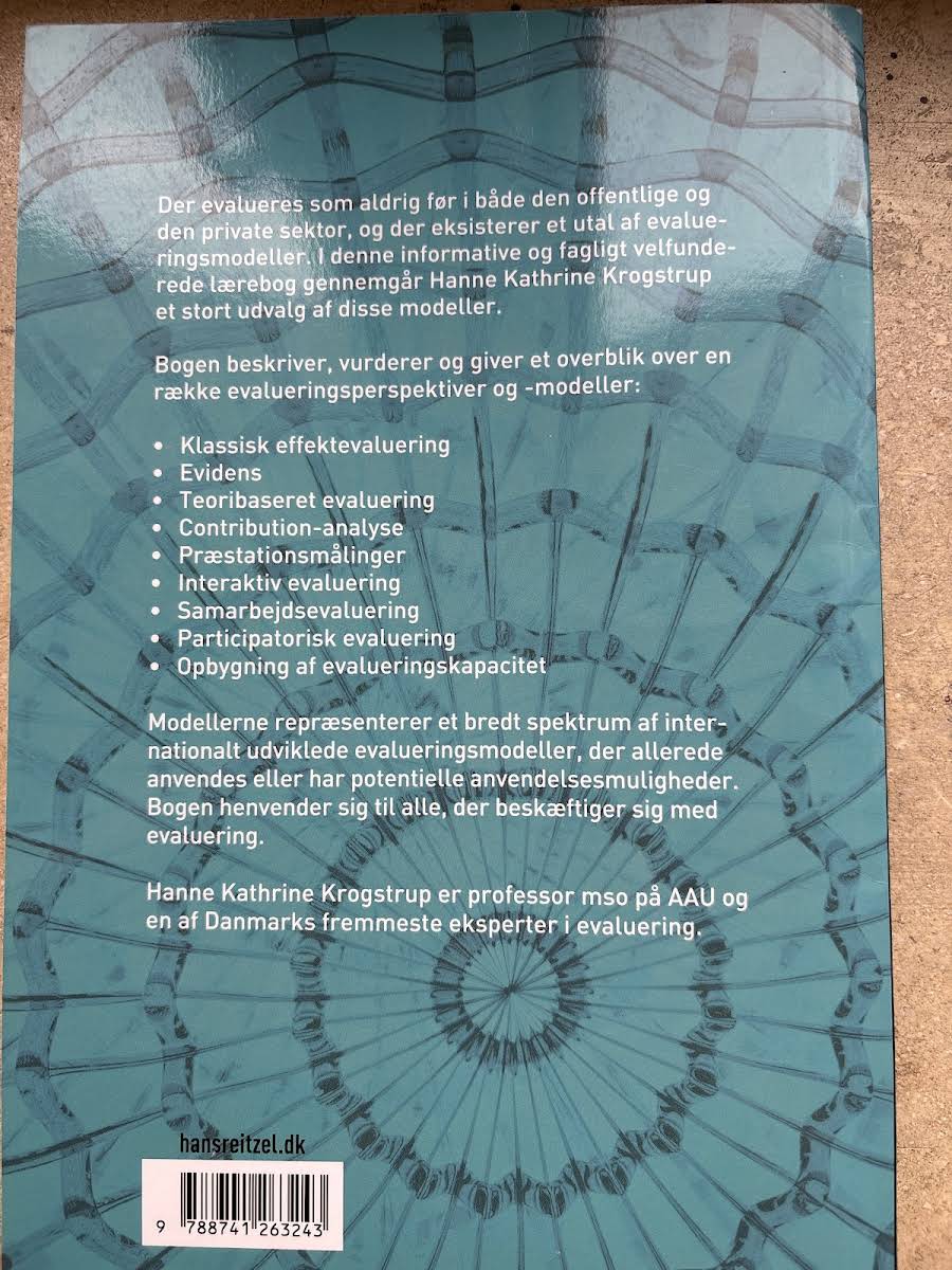 I "Evalueringsmodeller" præsenterer Hanne Kathrine Krogstrup, professor ved AAU, en grundig gennemgang af de mange evalueringsmodeller, der anvendes både i det offentlige og private, og som ejer stadigt større betydning. Bogen giver et overblik over både velkendte og nyere modeller, herunder klassisk effektevaluering, evidens, teoribaseret evaluering, contribution-analyse, præstationsmålinger, interaktiv evaluering, samarbejdsevaluering, participatorisk evaluering samt opbygning af evalueringskapacitet. Med en faglig og informativ tilgang tilbyder den tredje udgave, udgivet i 2016 af Gyldendal, læsere et solidt redskab til at forstå, anvende og vurdere de forskellige evalueringsperspektiver. Denne bog henvender sig til alle, der arbejder med evaluering og stræber efter et opdateret og internationalt perspektiv på evalueringsmodeller.