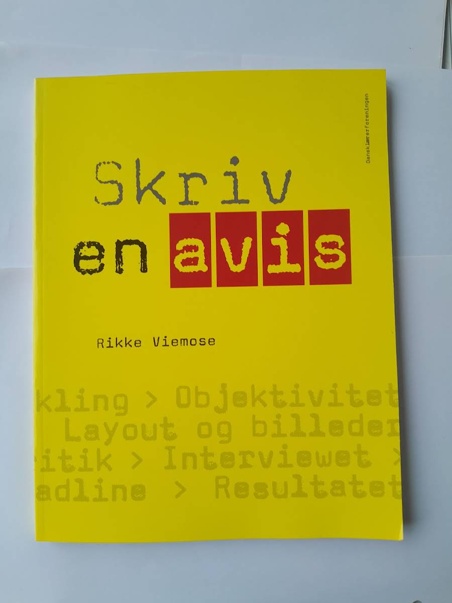 Bogen på billedet er "Skriv en avis" af Rikke Viemose. Det er en teoretisk og praktisk mediehåndbog, der er beregnet til undervisning i dansk og mediefag i folkeskolens ældste klasser. Forfatteren, Rikke Viemose, er journalist. Bogen blev udgivet af Dansklærerforeningens Forlag i 2004. Den fungerer som en lærebog og manual for elever, der skal lære om journalistik. Bogen indeholder emner som objektivitet, layout, billeder, interviews og rubrikker.