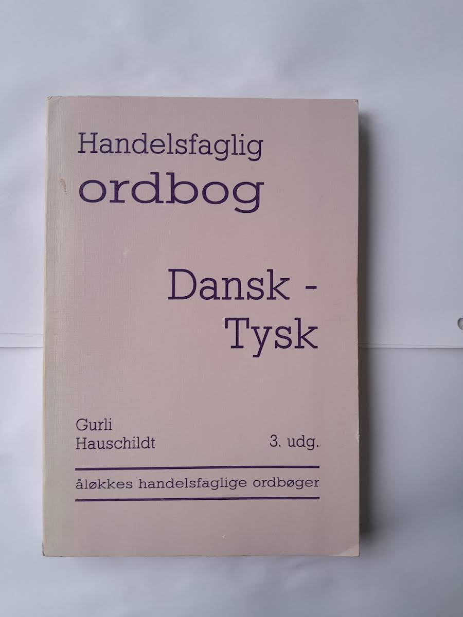 Handelsfaglig ordbog, dansk-tysk" af Gurli Hauschildt. Titel: Handelsfaglig ordbog, dansk-tysk Forfatter: Gurli Hauschildt Udgave: 3. udgave Forlag: Åløkkes handelsfaglige ordbøger
