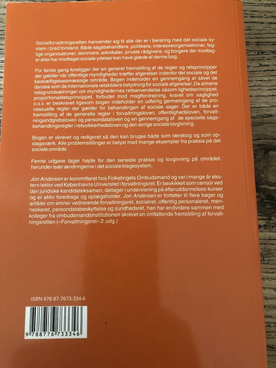 Socialforvaltningsret af Jon Andersen giver en klar introduktion til både danske og internationale retskilder, der har betydning for sociale afgørelser. Bogen redegør for centrale retsgrundsætninger såsom lighedsprincippet, proportionalitetsprincippet, forbuddet mod magtfordrejning og kravet om saglighed, og den tilbyder en detaljeret gennemgang af de processuelle regler, der styrer sagsbehandlingen inden for socialområdet. Derudover præsenteres de generelle regler i forvaltningsloven, offentlighedsloven, forvaltningsindgrebsloven og persondataloven i kombination med de særlige sagsbehandlingsregler, der findes i retssikkerhedsloven og den øvrige sociale lovgivning. Med sin grundige og lettilgængelige fremstilling er bogen ideel både som lærebog og opslagsværk, hvor mange praktiske eksempler tydeliggør de behandlede problemstillinger.