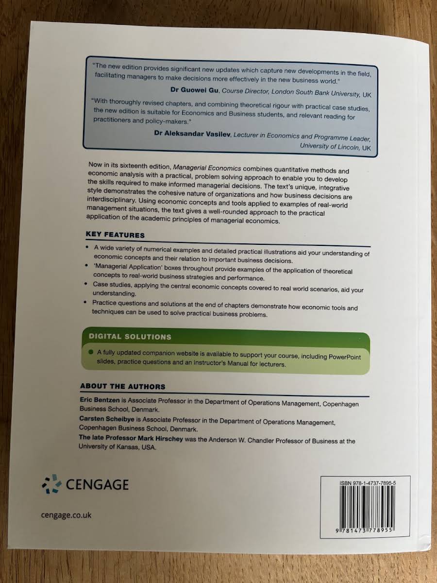 Managerial Economics, authored by Mark Hirschey, Eric Bentzen, and Carsten Scheibye, delivers a robust framework for understanding how economic principles underpin effective managerial decision-making. This comprehensive 2022 edition integrates quantitative methods with economic analysis, offering a practical approach that bridges academic theories and pressing business challenges. Drawing on updated examples and insights from the real world, the text illustrates the interconnected nature of organizational decisions. It emphasizes that business strategies are inherently interdisciplinary, requiring a blend of analytical skills and economic intuition to navigate dynamic market conditions. Spanning 816 pages, Managerial Economics equips readers with essential tools to dissect and interpret complex business scenarios. With its clear, problem-solving orientation, this edition serves as an indispensable resource for students and professionals aiming to apply economic reasoning to managerial challenges.