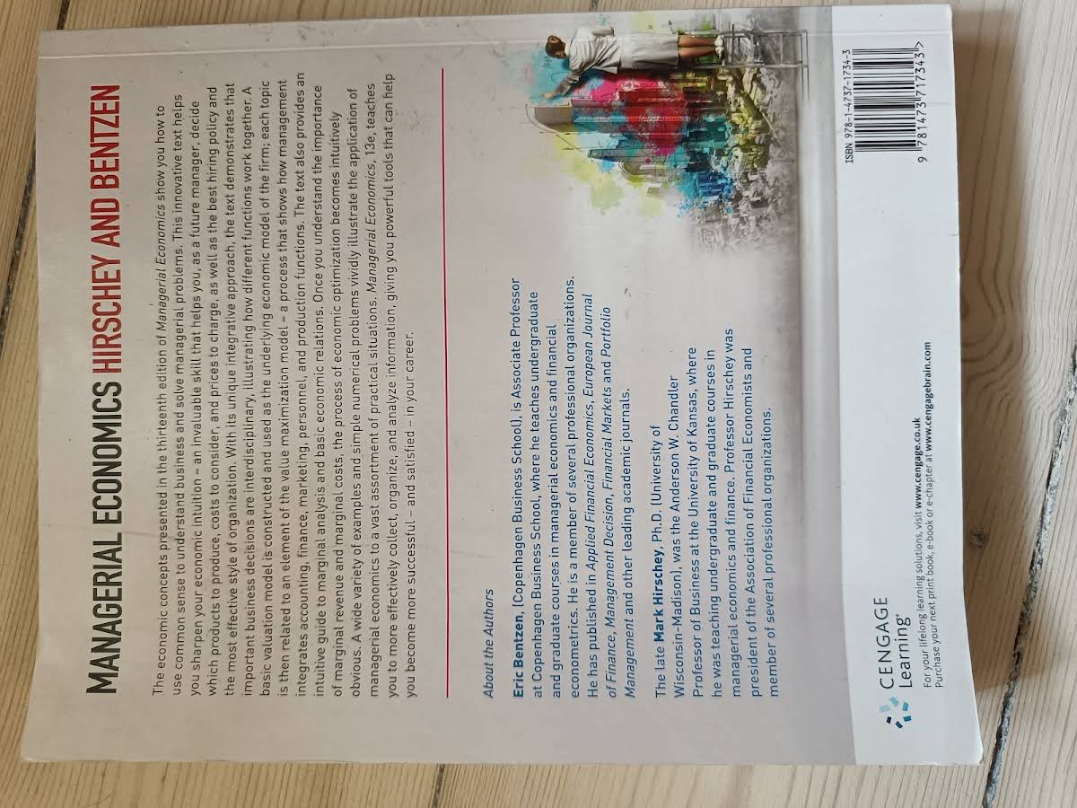 Managerial Economics by Mark Hirschey offers a comprehensive exploration of economic principles applied to real-world business challenges. This 13th edition presents an integrative approach that sharpens economic intuition and clarifies how various management functions - such as accounting, finance, marketing, personnel, and production - interact to drive value maximization within a firm. Structured around a foundational valuation model, the text emphasizes the interdisciplinary nature of key business decisions. With its clear explanations and practical insights, Managerial Economics serves as a valuable resource for students eager to understand and apply essential economic concepts in a managerial context.