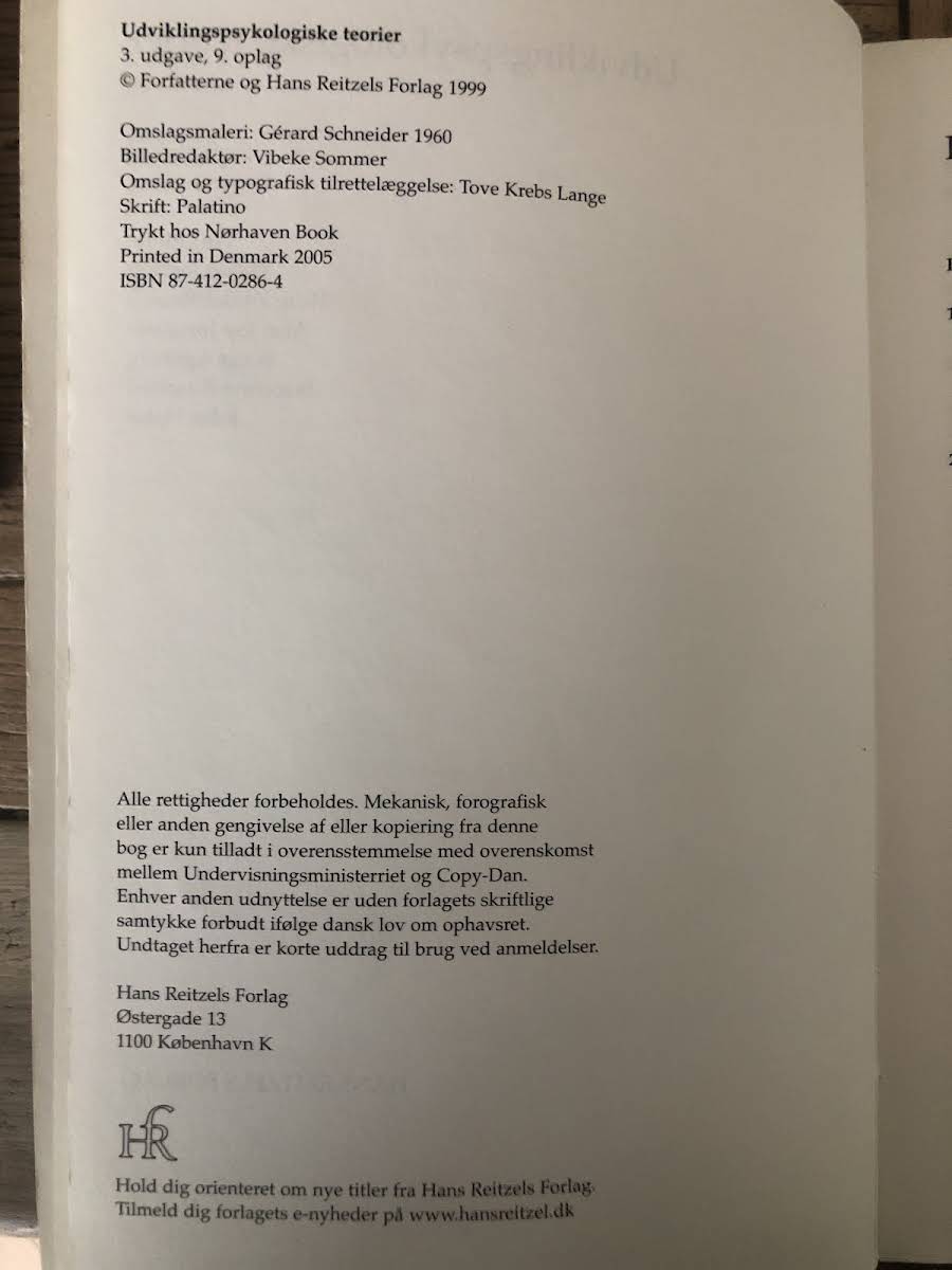 "Udviklingspsykologiske teorier" (3. udgave, 2005) byder på en alsidig introduktion til de centrale teorier inden for udviklingspsykologi. Bogen skaber et bredt overblik over, hvordan menneskelig udvikling kan forstås gennem tidens mest indflydelsesrige teoretiske perspektiver. Læseren møder teorier om udviklingsbegrebet, Freuds psykoanalytiske tilgang, Eriksons psykosociale model, Mahlers objektrelationsteori, Reichs kritiske karakterteori samt Brückner og Lorenzers kritiske perspektiver. Desuden redegøres der for adfærdspsykologiske teorier med fokus på Pavlov, Watson og Skinner, efterfulgt af gennemgang af Piagets erkendelsesteori, og videre med Vygotskij, Leontjew og Elkonins kulturhistoriske syn samt Sterns udviklingsteori. Hvert kapitel er omhyggeligt opbygget, så det kan læses både som et selvstændigt indslag og som en del af helheden. Kapitelstrukturen med indledning, biografi, teoriens grundsynspunkter, udviklingsstadier, relevans for pædagogik og terapi samt en kritisk diskussion gør bogen til en værdifuld ressource. En udførlig leksikal ordliste og et stikordsregister understøtter den pædagogiske tilgang og sikrer, at studerende inden for pædagogik, læring, socialt arbejde, sygepleje, ergoterapi og beslægtede fagområder kan finde både dybdegående teoretisk indsigt og praktiske perspektiver.