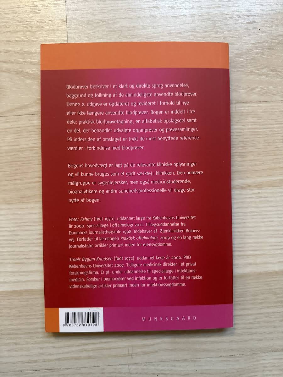 Peter Fahmy og Troels Bygum Knudsen præsenterer i den opdaterede 2. udgave af Blodprøver en overskuelig vejledning i anvendelse, baggrund og fortolkning af de mest udbredte blodprøver. Bogen, som er revideret for at inkludere de nyeste og samtidig fjerne de ældre, ikke længere brugte test, formidler stoffet i et klart og direkte sprog. Publikationen er struktureret i tre velafbalancerede dele. Den første del omhandler den praktiske tilgang til blodprøvetagning, mens den anden del fungerer som et alfabetisk opslagsværk for de forskellige prøver. I den tredje del fokuseres der på udvalgte organprøver og specifikke prøvesamlinger, hvor hovedvægten ligger på de klinisk relevante oplysninger.