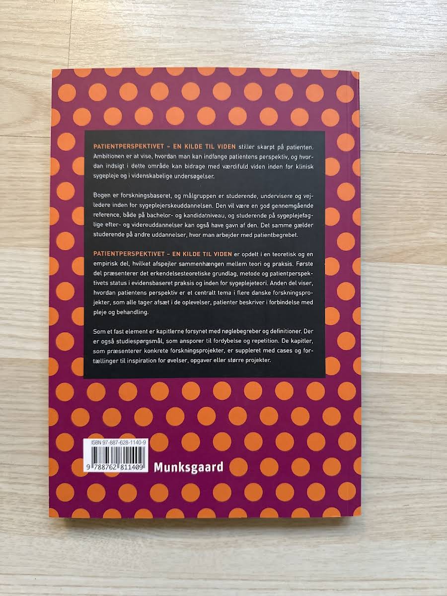 "Patientperspektivet – En kilde til viden" udspringer af et omfattende forskningsprojekt, der sætter patientens oplevelse i centrum for klinisk sygepleje og forskning. Bogen samler en bred forfattergruppe med mange års erfaring inden for sygeplejevidenskaben, og den udforsker, hvordan patientens perspektiv kan være med til at berige både teoretisk indsigt og praktisk arbejde. Med sin klare inddeling i teoretiske og empiriske afsnit belyses sammenhængen mellem evidensbaseret praksis og patientoplevelsernes betydning i pleje og behandling. Denne lærebogs praktiske tilgang illustreres gennem cases, øvelser og opgaver, der opfordrer både studerende, undervisere og vejledere til refleksion og anvendelse af de præsenterede koncepter. Hvert kapitel indeholder nøglebegreber og studiemateriale, der understøtter en dybere forståelse af, hvordan patientperspektivet kan forbedre klinisk praksis og forskning. Med "Patientperspektivet" får læseren et solidt værktøj til at integrere en vigtig dimension af patientoplevelsen i den daglige sygepleje.