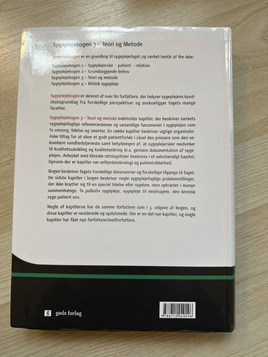 Sygeplejebogen 3: Teori og metode – 4. udgave giver et solidt indblik i de teoretiske og metodiske fundamenter, der er centrale for sygeplejefaget. Bogen, redigeret af Birthe Kamp Nielsen, repræsenterer en velafbalanceret kombination af teori og praksis, der understøtter den faglige udvikling. Med sine 570 sider tilbyder denne udgave en omhyggelig opdatering af viden og tilgange, som afspejler de nyeste tendenser i sygeplejens arbejdsområde. Gads Forlag præsenterer her et værk, der både studerende og praktikere kan have glæde af i deres daglige arbejde med teori og metode.