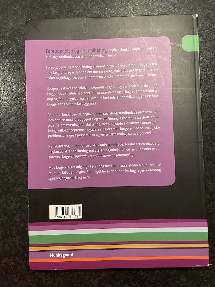 "Forebyggelse og rehabilitering" er en central lærebog, der spiller en væsentlig rolle på social- og sundhedsassistentuddannelsen. Bogen sætter fokus på mennesket og den samlede indsats for, at alle kan opnå en tryg og selvstændig hverdag, uanset handicap eller funktionsnedsættelse. Med en kombination af teori og praksis introducerer værket de centrale begreber og metoder, der skal til for at planlægge og gennemføre forebyggende og rehabiliterende aktiviteter skræddersyet til den enkelte patients eller borgers unikke situation. Bogen, der udgiver af Munksgård i 2013, er en vigtig ressource for alle, der ønsker at fremme livskvalitet og selvstændighed gennem målrettet indsats.