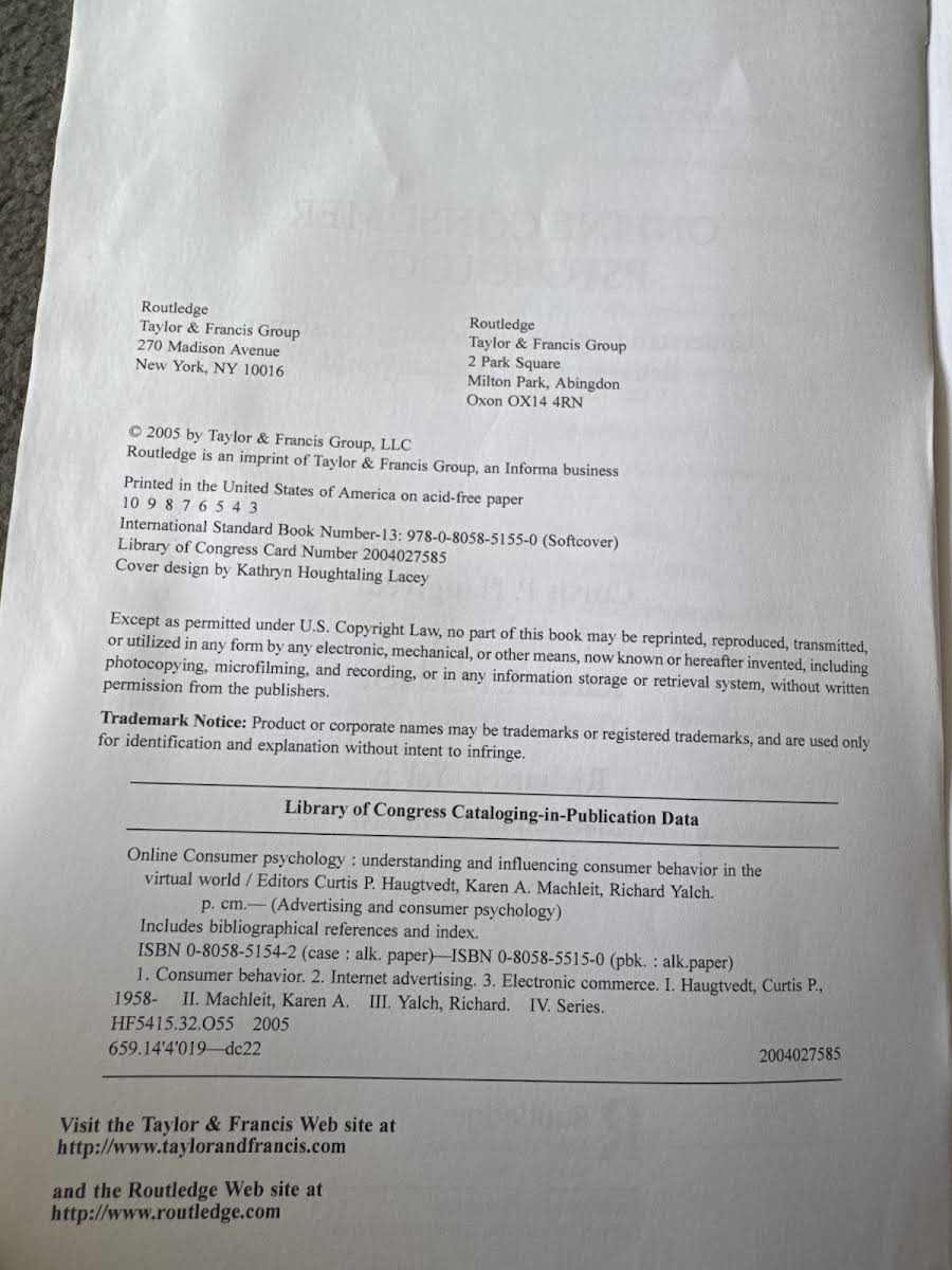 • Online Consumer Psychology, Curtis P. Haugtvedt, Karen A. Machleit, Richard Yalch, 9780805851557