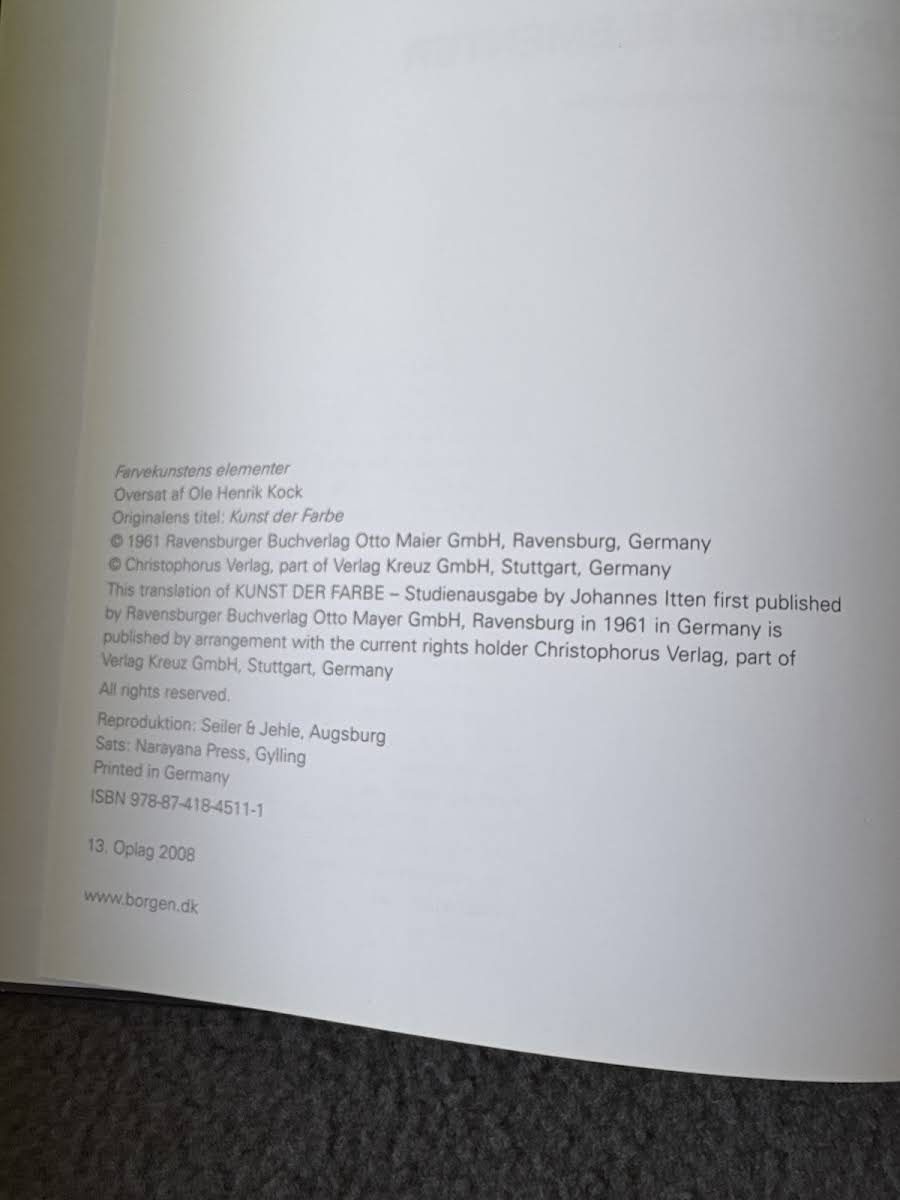 Johannes Ittens "Farvekunstens elementer" udfolder en dybdegående undersøgelse af farvernes betydning i kunstens verden, hvor subjektive oplevelser møder objektiv erkendelse. Bogen fungerer som en praktisk vejledning, der både inspirerer kunstnere og giver indsigt til studerende, som ønsker at forstå farvernes dynamik og funktion i det kreative udtryk. Udgivet i 1977 i paperbackformat og bestående af 94 sider, præsenterer værket en balanceret kombination af teoretisk refleksion og praktisk anvendelse. Værket fås også på tysk og svensk, hvilket understreger dets bredere appel og relevans i internationale kunstkredse.