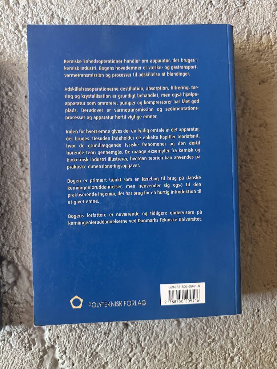 Kemiske enhedsoperationer giver et indgående overblik over det apparatur, der anvendes inden for den kemiske industri, med særligt fokus på væske- og gastransport, varmetransmission samt processer til adskillelse af blandinger. Hvert kapitel indeholder en fyldestgørende gennemgang af de anvendte enheder, og teoriafsnitene forklarer de fysiske fænomener bag de enkelte processer. Bogen indeholder også et væld af eksempler fra kemisk og biokemisk industri, som illustrerer, hvordan de teoretiske principper anvendes i praktisk dimensionering og drift. Kemiske enhedsoperationer er tilrettelagt som en lærebog til kemiingeniøruddannelsen, men den henvender sig samtidig til praktiserende ingeniører, der ønsker en hurtig og effektiv introduktion til emnet.