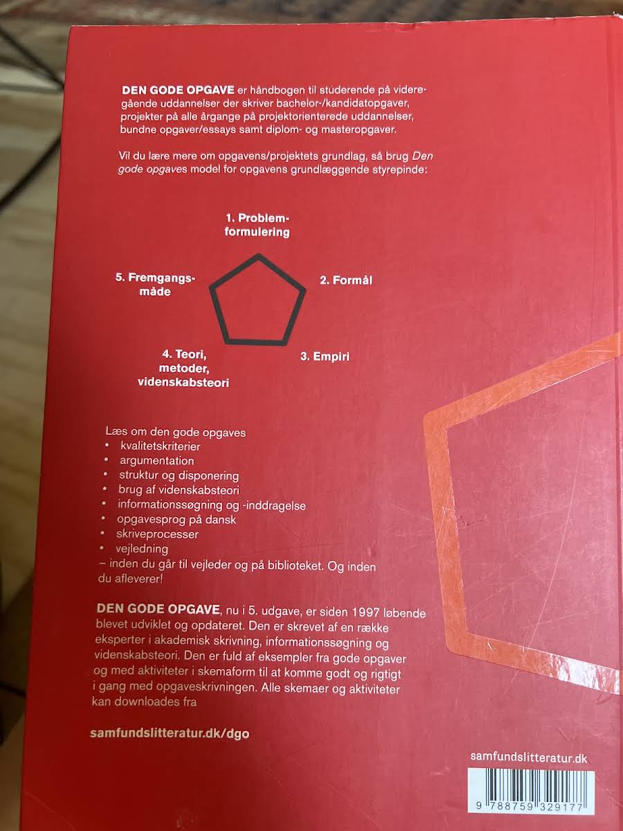 "Den gode opgave" udkommer nu i 5. udgave og er den ubestridte guide for alle studerende, der skal skrive selvstændige og videnskabelige opgaver. I denne udgave har Peter Stray Jörgensen og Lotte Rienecker fået selskab af fem nye medforfattere, som bidrager med deres unikke ekspertise. 5. udgave byder på to nye kapitler – et om videnskabsteori, der belyser, hvordan man omsætter teoretiske overvejelser til praksis, samt et kapitel om litteratur- og informationssøgning, som introducerer de studerende til processen bag en systematisk research. Bogen er fortsat fyldt med konkrete eksempler og aktiviteter, der hjælper den studerende godt på vej i opgaveskrivningen, og har i over 20 år dannet grundlaget for succesfuld akademisk skrivning.