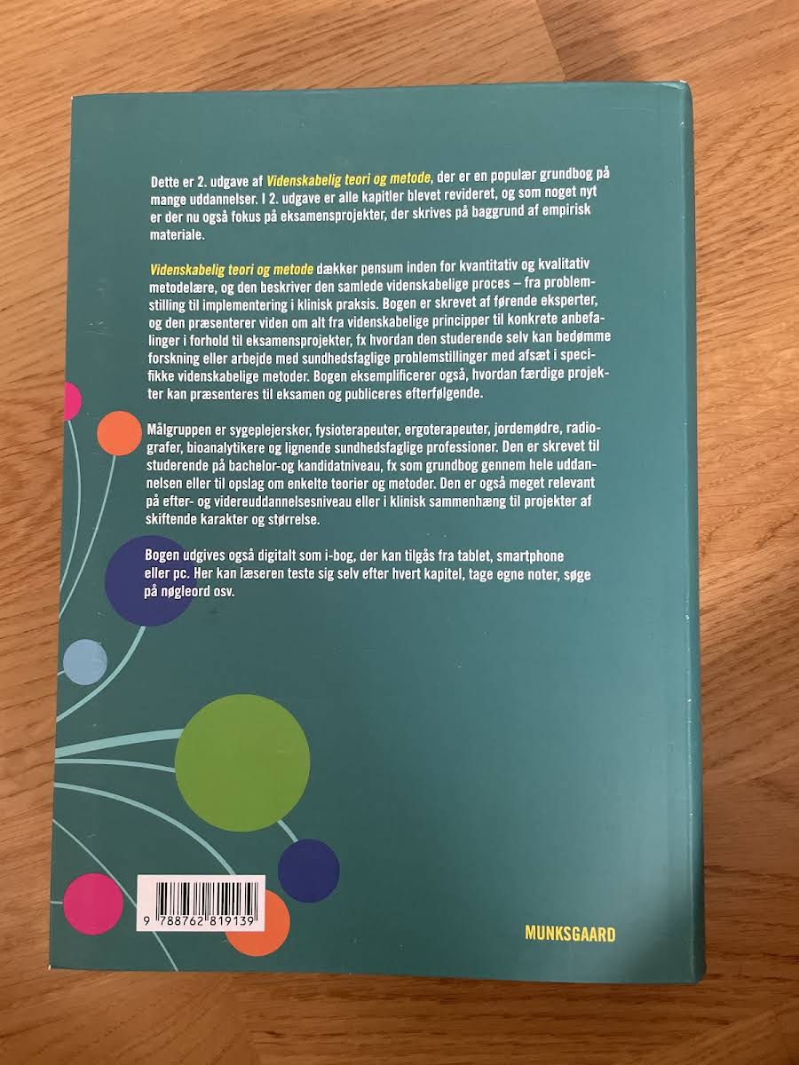 "Videnskabelig teori og metode" (2. udgave) er en anerkendt sundhedsvidenskabelig grundbog redigeret af Maria Henricson. Bogen byder på en dybdegående introduktion til teorier samt kvantitative og kvalitative metoder, der benyttes inden for sundhedsvidenskaben. Med tekster udarbejdet af førende eksperter får den studerende en klar forståelse af den videnskabelige proces – fra den oprindelige problemstilling til den praktiske implementering og evaluering. I denne opdaterede udgave er der lagt særlig vægt på eksamensprojekter, både i forhold til deres udformning og den efterfølgende formidling. Bogen retter sig mod studerende på sundhedsvidenskabelige uddannelser, herunder sygeplejersker, fysioterapeuter, jordemødre, radiografer og bioanalytikere. "Videnskabelig teori og metode" fungerer både som et fundamentalt opslag og som en praktisk guide, der støtter den studerendes videre faglige udvikling.