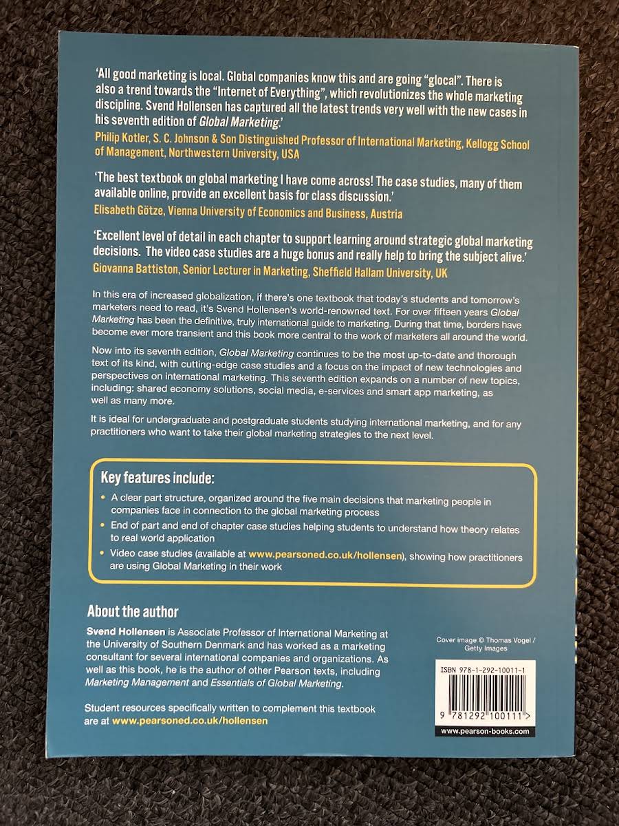 Global Marketing is a comprehensive guide to understanding the complexities of international marketing. In this first edition by Svend Hollensen, published by Pearson in 2016, readers are introduced to the fundamental question of whether products should be standardized or tailored to meet the needs of different markets. The text explores this delicate balance through the innovative concept of “glocal,” demonstrating how global strategies can be effectively combined with local adaptations. Rich with end-of-chapter exercises and populated with practical cases, Global Marketing transforms theory into actionable insights. Spanning 872 pages, each chapter is meticulously crafted to help both students and marketing professionals navigate the evolving landscape of international marketing. Whether you are studying marketing strategies or seeking to enhance your practical skills, this book serves as an essential resource in today’s interconnected world.