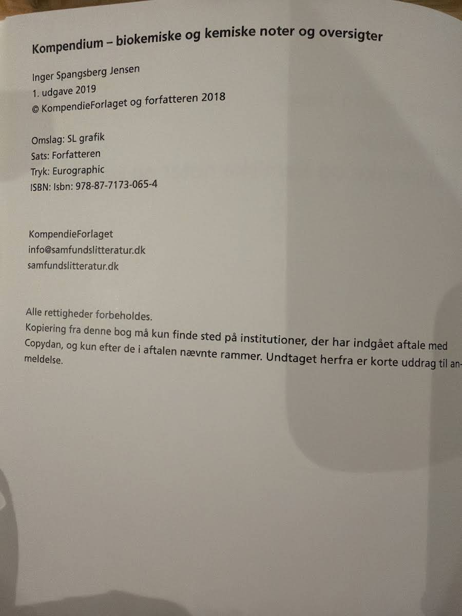 • Kompendium- biokemiske og kemiske noter og oversigter, Inger Spangsberg Jensen, 9788771730654