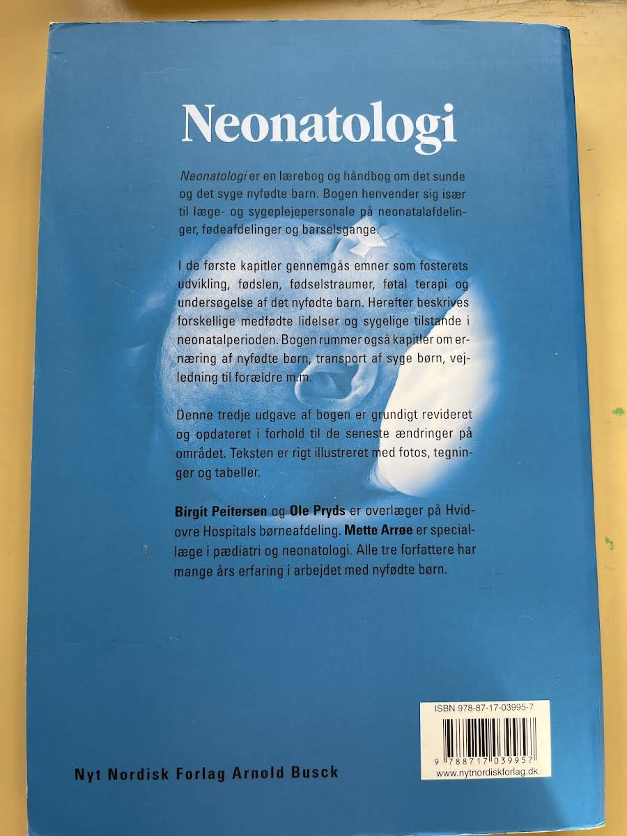 Neonatologi – Det raske og det syge nyfødte barn er en opdateret lærebog designet til sundhedspersonale, der arbejder på neonatal-, føde- og barselsafdelinger. Bogen dykker ned i fosterudviklingen og fødselsforløbet, hvor både normale og komplikationsfyldte fødsler belyses, og der gives særlig opmærksomhed til præmature og intrauterint væksthæmmede børn samt undersøgelse og ernæring for både raske og syge nyfødte. I de efterfølgende kapitler præsenteres en række sygelige tilstande og medfødte lidelser med fokus på symptomer, diagnose, behandling og prognose. I denne 3. udgave fra 2008 er indholdet gennemrevideret og opdateret med nye illustrative tegninger og fotografier, som gør stoffet mere tilgængeligt og øger læseoplevelsen. Bogens omfattende register, afsnit om lægemidler samt ordforklaringer understøtter en nem og effektiv anvendelse i klinisk praksis.
