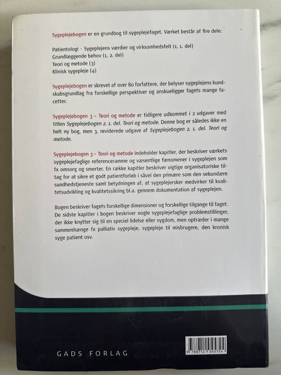 Sygeplejebogen 3 afløser den tidligere udgave, SYGEPLEJEBOGEN 2.1, og udgør en grundbog til sygeplejefaget med et bredt perspektiv på fagets kundskabsgrundlag. Bogen, redigeret af Birthe Kamp Nielsen, samler bidrag fra over 80 forfattere, som tilsammen kaster lys over de mange facetter af sygeplejen. I dette værk er der særligt fokus på de teoretiske og metodiske aspekter, som udgør den sygeplejefaglige referenceramme. En række kapitler behandler centrale emner som dokumentation, sygeplejeudvikling, samt specifikke områder inden for væskebehandling, sårbehandling, smertebehandling og både præ- og postoperativ sygepleje. 3. udgave byder desuden på nye kapitler, der dykker ned i emner som Kropskundskabing, Det accelererede patientforløb, Den kronisk syge patient samt Sygepleje til misbrugere af alkohol og af stoffer. Denne udvidede tilgang sikrer et opdateret og nuanceret overblik over de centrale problemstillinger i nutidens sygepleje.