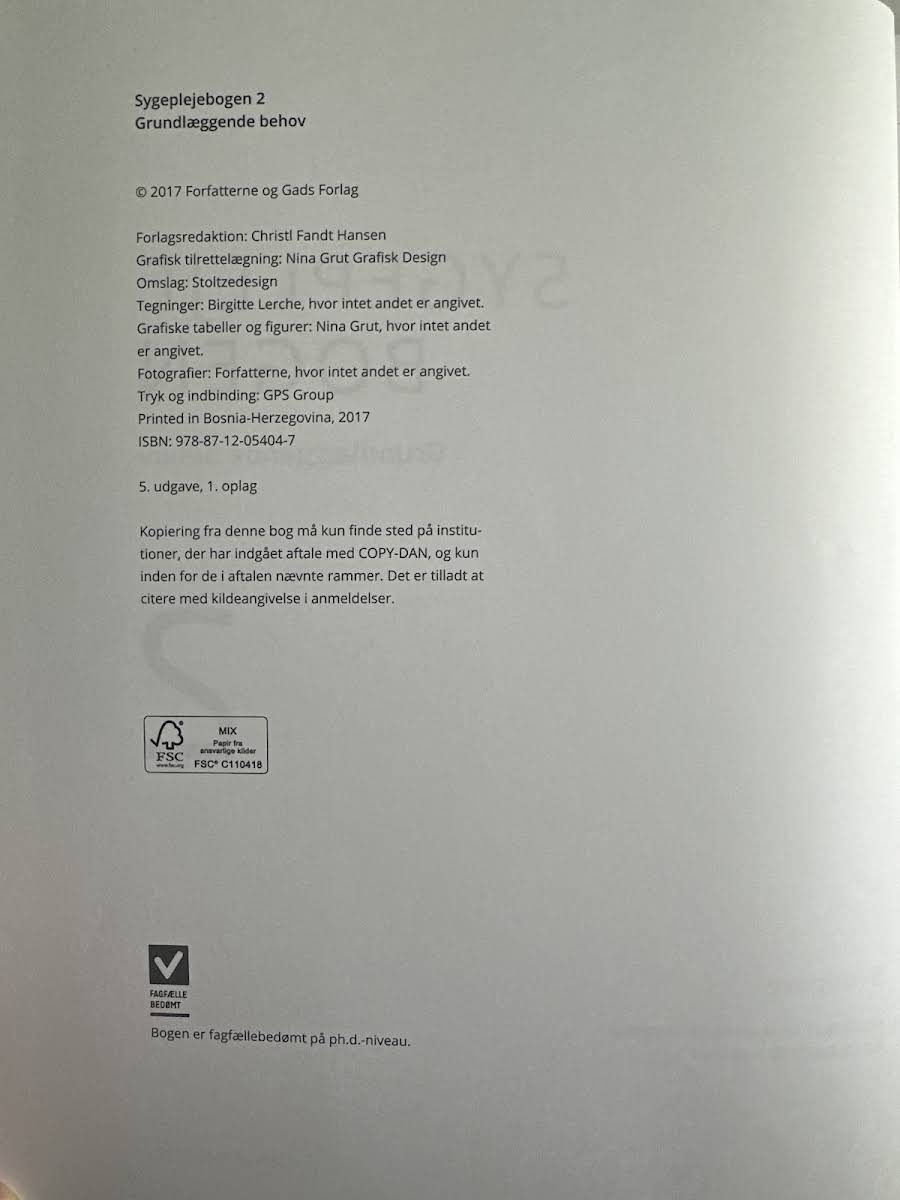 Sygeplejebogen 2 understreger sygeplejerskens evne til at observere og handle klinisk målrettet i forhold til patientens basale behov. Bogen åbner med et indledende kapitel, der giver en grundig introduktion til den systematiske sygeplejeproces, som danser basis for dataindsamling, -analyse og intervention. Herefter dykker teksten ned i en række centrale områder, hvor der blandt andet sættes fokus på respiration, kredsløb, udskillelser samt temperaturregulering. Kapitlerne omfatter også ernæring, væskebehandling, kvalme og opkast, og de videre aspekter af patientpleje, som søvn, personlig hygiejne, immobilitet, smerter, seksualitet og infektionsforebyggelse. Undervejs er samarbejdet med både patienten og de pårørende integreret som en væsentlig del af den kliniske praksis. Bogens afsluttende kapitel runder værket af ved at behandle døden – med særlig fokus på sygeplejerskens observationer og interventioner over for den døende patient samt den nære dialog med pårørende.