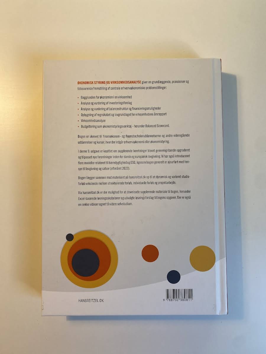 Økonomisk styring og virksomhedsanalyse er en praksisorienteret lærebog, der henvender sig til studerende på finansøkonom- og finansbacheloruddannelsen. Denne 9. udgave er nøje opdateret med de nyeste ændringer i lovgivningen pr. efterår 2023, og de praktiske eksempler i alle kapitler er revideret, så du får et tidssvarende og relevant undervisningsmateriale. Bogen giver en grundig gennemgang af centrale erhvervsøkonomiske problemstillinger – fra baggrunden for virksomhedens økonomi og analyse af investeringsforslag til vurdering af balancestruktur og finansieringsmuligheder. Desuden findes en detaljeret gennemgang af regnskabets opbygning og det tilhørende lovgrundlag for årsrapporten, virksomhedsanalyse samt budgettering som et vigtigt økonomistyringsværktøj, herunder anvendelsen af Balanced Scorecard. Kapitel 10 er særligt udbygget for at imødekomme de nye krav til supplerende beretninger under både dansk og europæisk lovgivning, og indeholder flere nye modeller med fokus på bæredygtighed og ESG. For at støtte din læring er der tilknyttet undervisningsvideoer og praktiske Excel-ark med løsningsforslag, som giver mulighed for at arbejde målrettet og i dit eget tempo med stoffet.