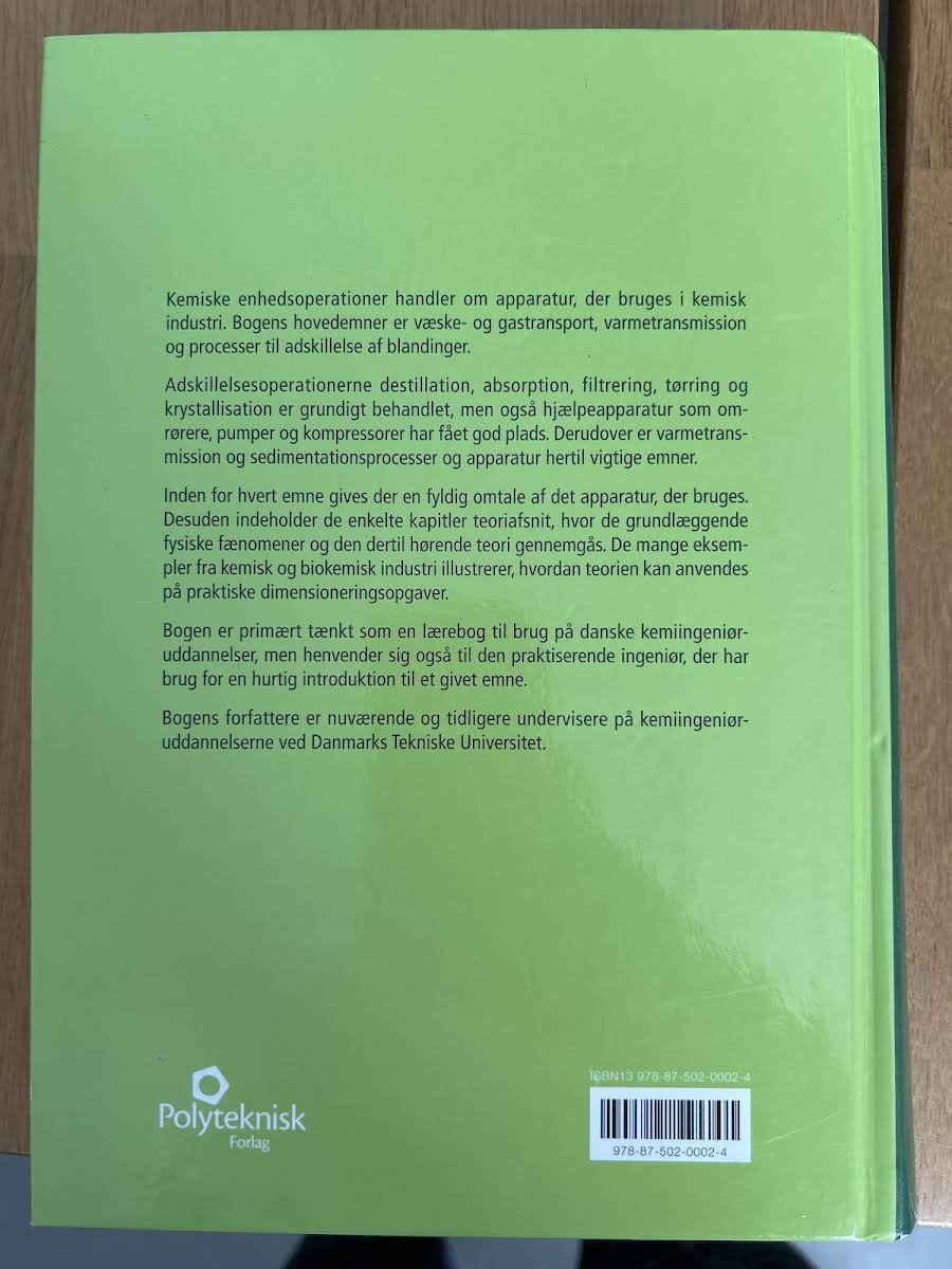 Kemiske Enhedsoperationer udgør centrale byggesten for design og drift af procesanlæg i den kemiske industri. Hvert kapitel redegør for de dominerende fysiske fænomener bag den enkelte enhedsoperation samt for den teoretiske og matematiske beskrivelse, der er nødvendig ved dimensionering af anlæg. Bogen indeholder desuden en grundig gennemgang af det apparatur, der anvendes industrielt, og en række illustrative eksempler og beregningsopgaver med tilhørende løsninger. I denne moderniserede udgave fra 2019 er de tidligere versioner blevet opdateret med et strammere indhold og et samlet bedre overblik. Nogle kapitler er reduceret, mens andre emner – såsom partikelteknologi, omrøring, blanding, beluftning og ventiler – er udvidet. Et helt nyt kapitel om måleteknik er også tilføjet, og et samlet afsnit om procesforsyninger (utilities) præsenterer emner som damp, vacuum, vandforsyning, trykluft og rengøringsteknologi/CIP-processer. Bogen henvender sig primært til kemiingeniørstuderende, men er ligeledes en værdifuld ressource for studerende på laborant- og procesoperatøruddannelser samt for praktiserende ingeniører i behov for en hurtig og grundig introduktion til de enkelte emner.