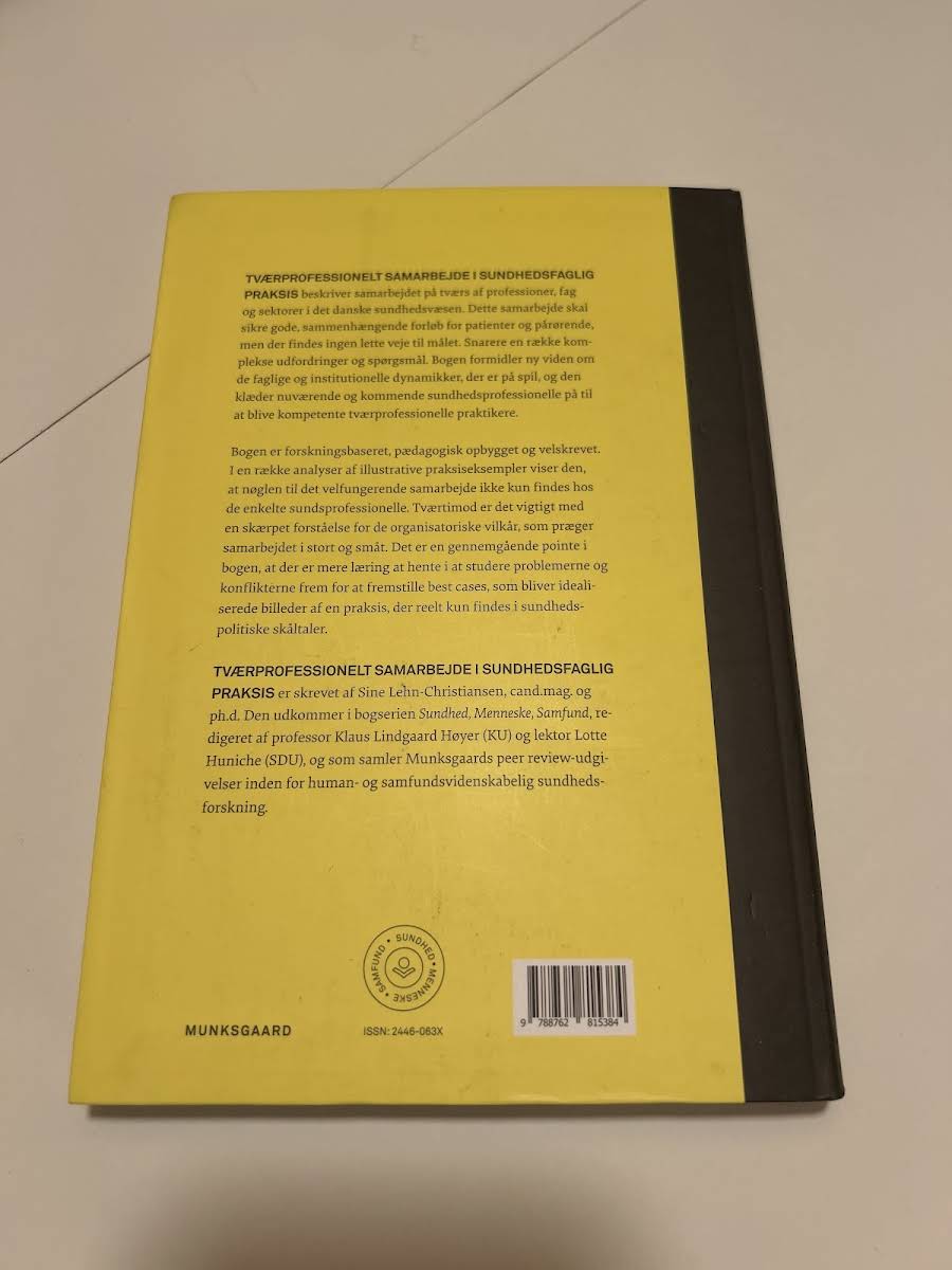 I "Tværprofessionelt samarbejde i sundhedsfaglig praksis" tager Sine Lehn-Christiansen, cand.mag. og ph.d., udgangspunkt i de komplekse og ofte udfordrende betingelser for samarbejde på tværs af sundhedsprofessioner. Med udgangspunkt i en række analyser af praksiseksempler belyser bogen, hvordan både faglige og organisatoriske dynamikker spiller sammen og påvirker patientforløb i det danske sundhedsvæsen. Gennem en kritisk gennemgang af samarbejdets realiteter understreges, at forbedringer ikke kun opnås gennem enkeltspecialisters indsats, men også ved at forstå og tilpasse de institutionelle rammer. Med et solidt teoretisk og empirisk fundament styrker bogen nuværende og kommende sundhedsprofessionelle evnen til at navigere i og udvikle tværprofessionelle praksisser.