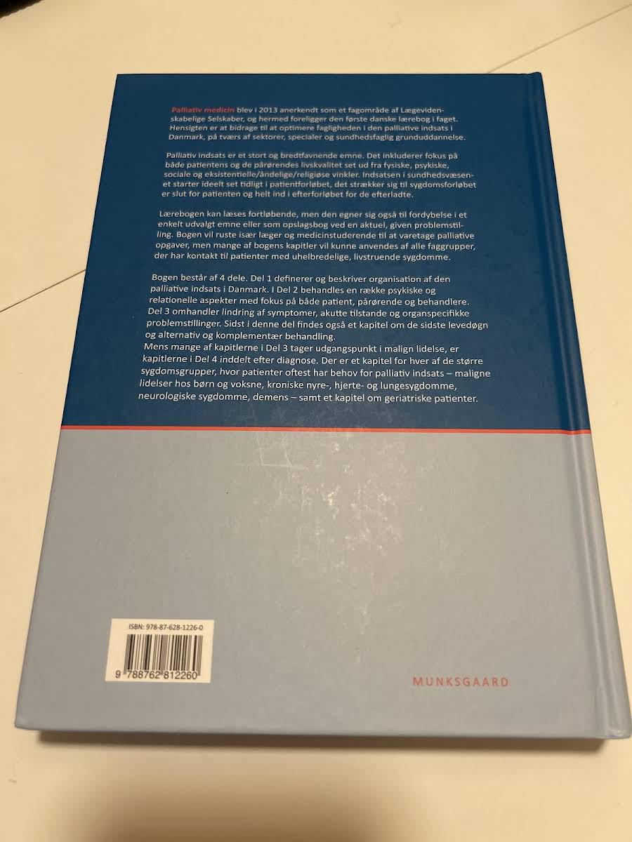 "Palliativ medicin" er den første danske lærebog, som går i dybden med den palliative behandlings tilgang. Bogen belyser de mange facetter af livet med uhelbredelige sygdomme med fokus på både de fysiske, psykiske, sociale og eksistentielle aspekter. Den er udarbejdet, så den både kan læses fra start til slut som en sammenhængende introduktion og benyttes til fordybelse i enkelte kapitler. Med bidrag fra en bred kreds af specialister giver bogen et solidt og nuanceret indblik i den palliative medicin. "Palliativ medicin" er målrettet læger og medicinstuderende, men rummer også værdifulde perspektiver for andre sundhedsprofessionelle, der i deres daglige arbejde møder patienter med livstruende sygdomme. Med sin grundige og alsidige tilgang tjener den både som et centralt studie værktøj og et praktisk opslagsværk.