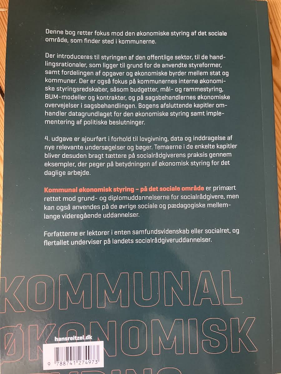 Bogen "Kommunal økonomisk styring" sætter fokus på den økonomiske styring af det sociale område i kommunerne. Den introducerer de overordnede rammer for den offentlige sektors styringsprincipper samt de handlingsrationaler, som ligger til grund for de anvendte styreformer. Desuden belyses fordelingen af opgaver og økonomiske byrder mellem stat og kommuner. I værket granskes yderligere kommunernes interne økonomiske styringsredskaber, herunder budgetter, mål- og rammestyring, BUM-modeller og kontrakter. Bogen behandler også de økonomiske overvejelser, som sagsbehandlere gør sig i deres daglige arbejde. De afsluttende kapitler fokuserer på datagrundlaget for den økonomiske styring samt implementering af politiske beslutninger, og den nu 4. udgave er ajourført med seneste lovgivning, data og relevante undersøgelser. Med sit praktiske og teoretiske fokus henvender "Kommunal økonomisk styring" sig primært til grund- og diplomuddannelserne for socialrådgivere, men er også anvendelig for de øvrige sociale og pædagogiske videregående uddannelser. Forfatterne, der alle er lektorer inden for samfundsvidenskab eller socialret, peger med eksempler på vigtigheden af økonomisk styring i den daglige praksis.