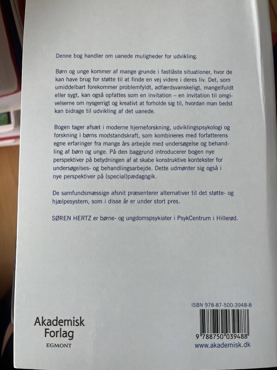 Børne- og ungdomspsykiatri – Nye perspektiver og uanede muligheder byder på en innovativ tilgang til de udfordringer, der møder børn og unge i dag. Med udgangspunkt i moderne hjerneforskning, udviklingspsykologi og ny forskning i børns modstandskraft, kombinerer Søren Hertz sine mangeårige erfaringer med klinisk praksis i arbejdet med børn og unge. Bogen udforsker, hvordan tilsyneladende problematiske adfærdsmønstre og vanskeligheder kan ses som muligheder for udvikling. Den belyser, hvordan opmærksomhed på den enkeltes potentiale og de omgivende konteksters betydning kan åbne op for nye metoder inden for både undersøgelse og behandling. Værket understreger vigtigheden af at skabe konstruktive rammer, der bidrager til en helhedsorienteret indsats, hvor både psykisk sundhed og pædagogiske tiltag spiller en central rolle.