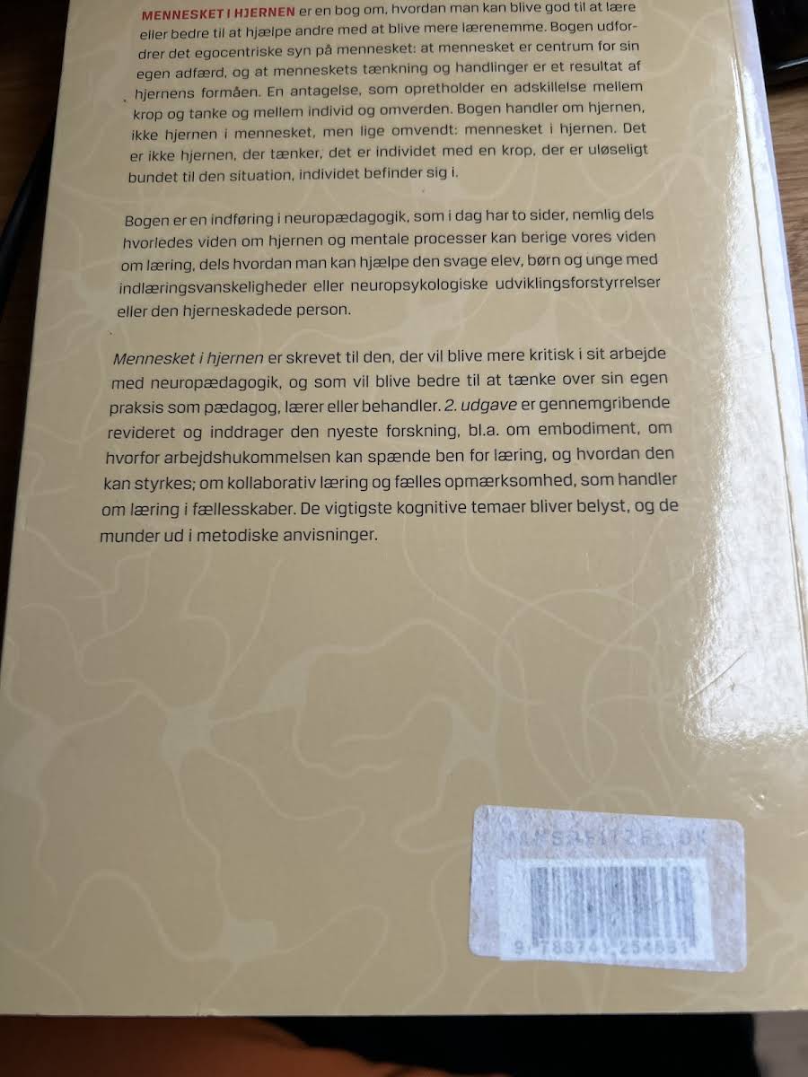 Mennesket i hjernen er en grundig indføring i neuropædagogikkens verden, hvor fokus flyttes fra hjernen som en isoleret enhed til mennesket, der manifesterer sig igennem hjernens evner. Bogen udforsker, hvordan viden om mentale processer kan berige vores forståelse af læring og derved åbne nye muligheder for både pædagoger, lærere og behandlere. Med en balanceret tilgang til de teoretiske og praktiske aspekter af hjernens betydning for læring, sætter Kjeld Fredens skarpt på, hvordan vi kan støtte dem med indlæringsvanskeligheder, neuropsykologiske udfordringer og hjerneskader. Ved at belyse de centrale kognitive temaer og tilbyde metodiske anvisninger giver bogen læseren redskaber til at reflektere kritisk over egen praksis og opnå en dybere forståelse af, hvordan mennesket og hjernen hænger sammen.