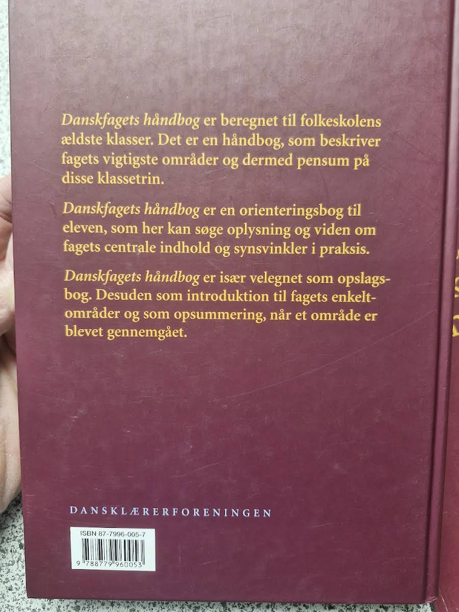 Danskfagets håndbog er en omfattende guide, designet til de ældste elever i folkeskolen, som giver et overblik over de centrale elementer i faget dansk. Bogen fungerer både som introduktion til de enkelte delområder og som en praktisk opslagsbog, der hjælper med at få styr på de væsentlige emner, man skal kunne til dansk. Bogen er inddelt i tre dele. Den første del behandler emner som sprog, sagtekster, fiktion, skrivning og det talte sprog, mens den anden del fokuserer på grammatik – fra bøjning af ord til opbygning af sætninger og den praktiske anvendelse heraf i læsning og skrivning. I den tredje del findes et alfabetisk dansk-leksikon, hvor eleverne kan slå centrale begreber op, herunder forskellige genrer som artikel, eventyr, gyser og splatter. Publikeret af Dansklærerforeningen i 2004 og udført som en robust hardcover-bog med 312 sider, er denne håndbog et essentielt redskab for alle, der ønsker et solidt grundlag i faget dansk.
