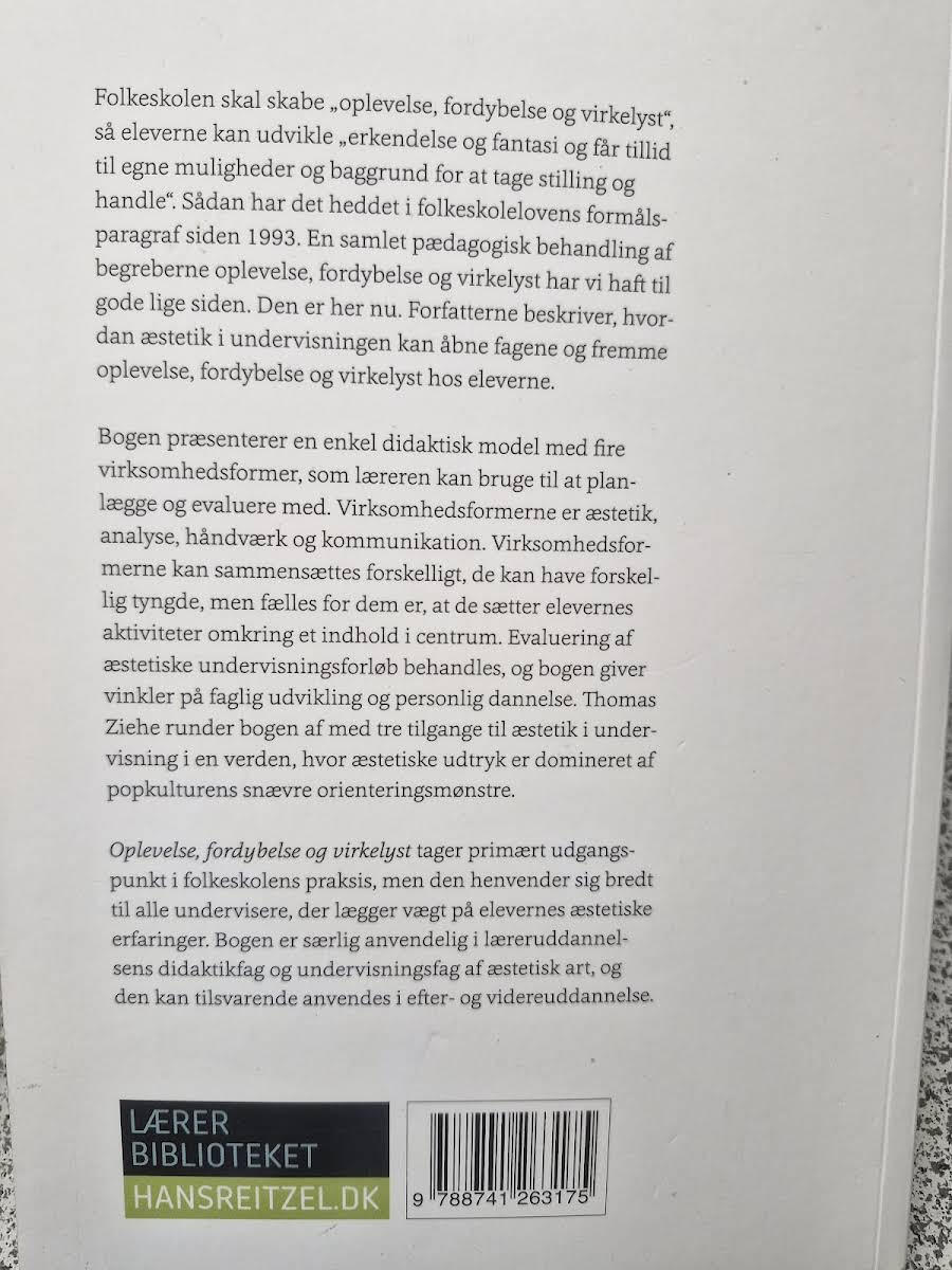 Med udgangspunkt i den pædagogiske vision om at udvikle elevernes kreativitet, kritiske sans og evne til at fordybe sig, udforsker Oplevelse, fordybelse og virkelyst, hvordan æstetiske erfaringer kan berige undervisningen. Bogen præsenterer en didaktisk model, der understøtter, at æstetik i klasseværelset åbner op for en levende formidling af fagligt indhold og personlige erfaringer. I Noter til æstetik i undervisningen inviterer forfatterne Thomas Illum Hansen og Peter Brodersen undervisere til at reflektere over, hvordan æstetiske processer kan styrke elevernes læring og engagement. Med udgangspunkt i folkeskolens praksis, men med relevans for alle pædagogiske miljøer, tilbyder denne første udgave fra Gyldendal (2015) 240 sider til dem, der ønsker at integrere æstetik som et redskab i den daglige undervisning.
