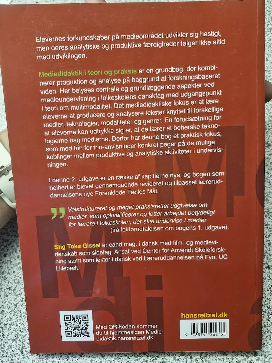 Elevernes forkundskaber inden for medieområdet udvikler sig permanent, men de analytiske og produktive færdigheder rykker ikke altid i samme tempo. "Mediedidaktik i teori og praksis" præsenterer en grundbog, der med forskningsbaseret tilgang samler produktion og analyse i ét samlet værktøj til medieundervisningen. Bogen sætter fokus på, hvordan elever opnår kompetencer til både at skabe og fortolke medietekster, og den trækker på teorier om multimodalitet for at illustrere de underliggende principper. I denne 2. udgave er flere af kapitlerne revideret og tilpasset de nye mål i læreruddannelsen, hvilket giver bogen et opdateret og praksisnært præg. Med konkrete trin-for-trin-anvisninger tydeliggøres sammenhængen mellem produktion og analyse, så undervisningen kan understøttes af en effektiv mediedidaktisk tilgang. Stig Toke Gissel bidrager med sin ekspertise inden for dansk og film- og medievidenskab og sikrer, at bogen både er teoretisk funderet og praktisk anvendelig.